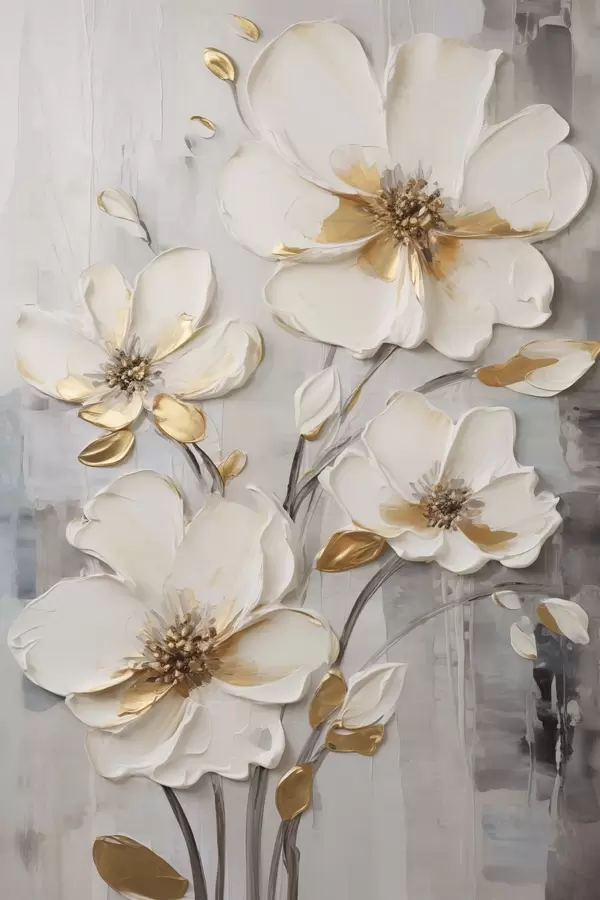 Poster Des fleurs blanches rehaussées de touches jaunes sur un fond texturé Nr f48721