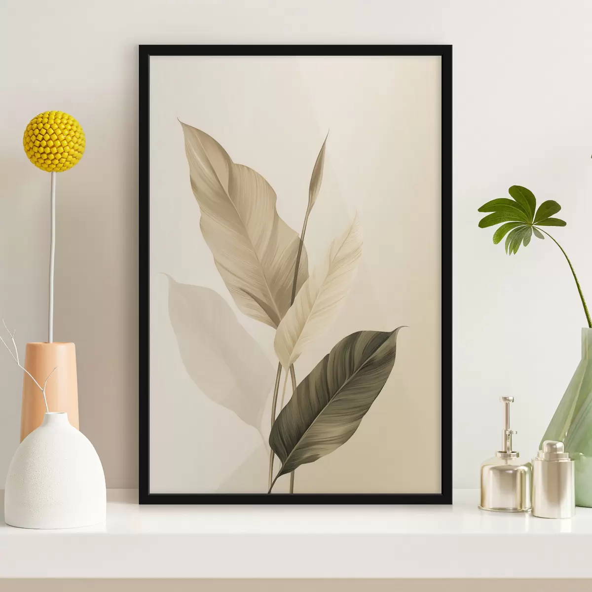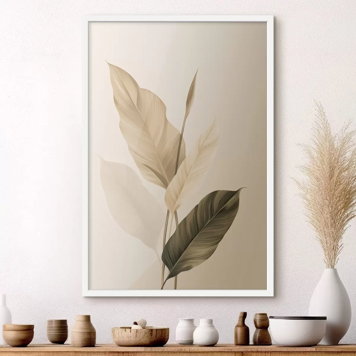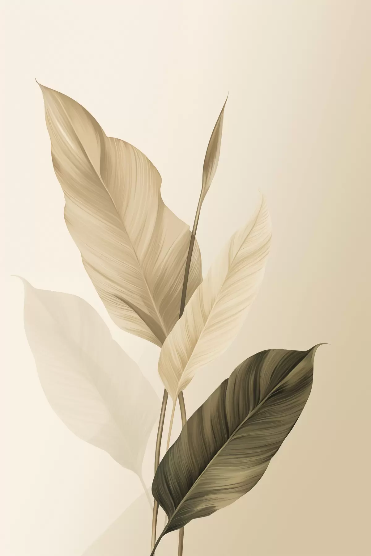 Poster Grandes feuilles tropicales dans des tons de beige et de marron, sur fond clair Nr f48725