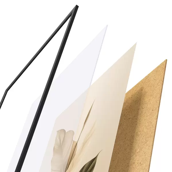 L’affiche encadrée est composée d’un cadre, d’un plexiglas, d’une image imprimée et d’un support en aggloméré. Elle est prête à être accrochée au mur grâce aux fixations situées à l’arrière.