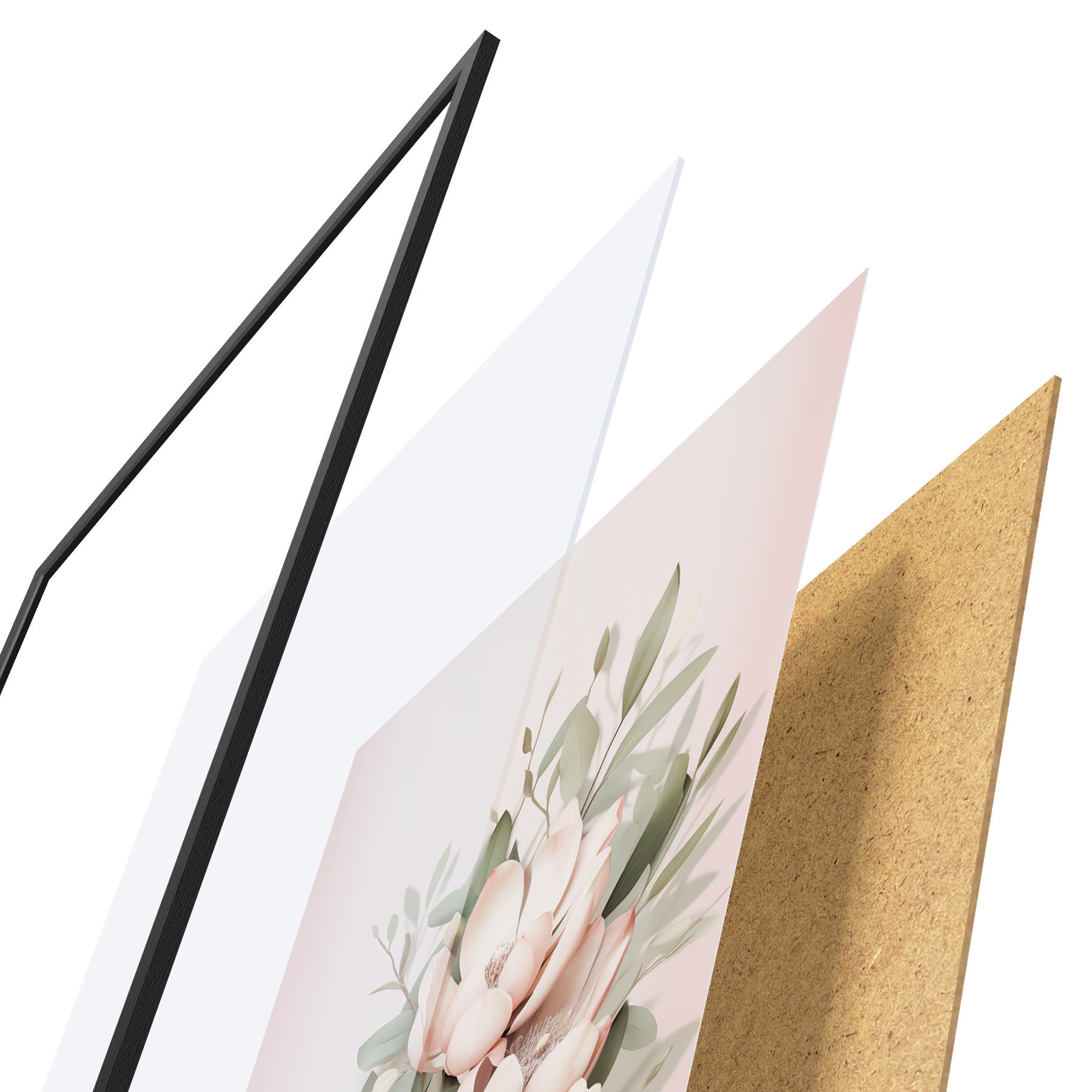 L’affiche encadrée est composée d’un cadre, d’un plexiglas, d’une image imprimée et d’un support en aggloméré. Elle est prête à être accrochée au mur grâce aux fixations situées à l’arrière.