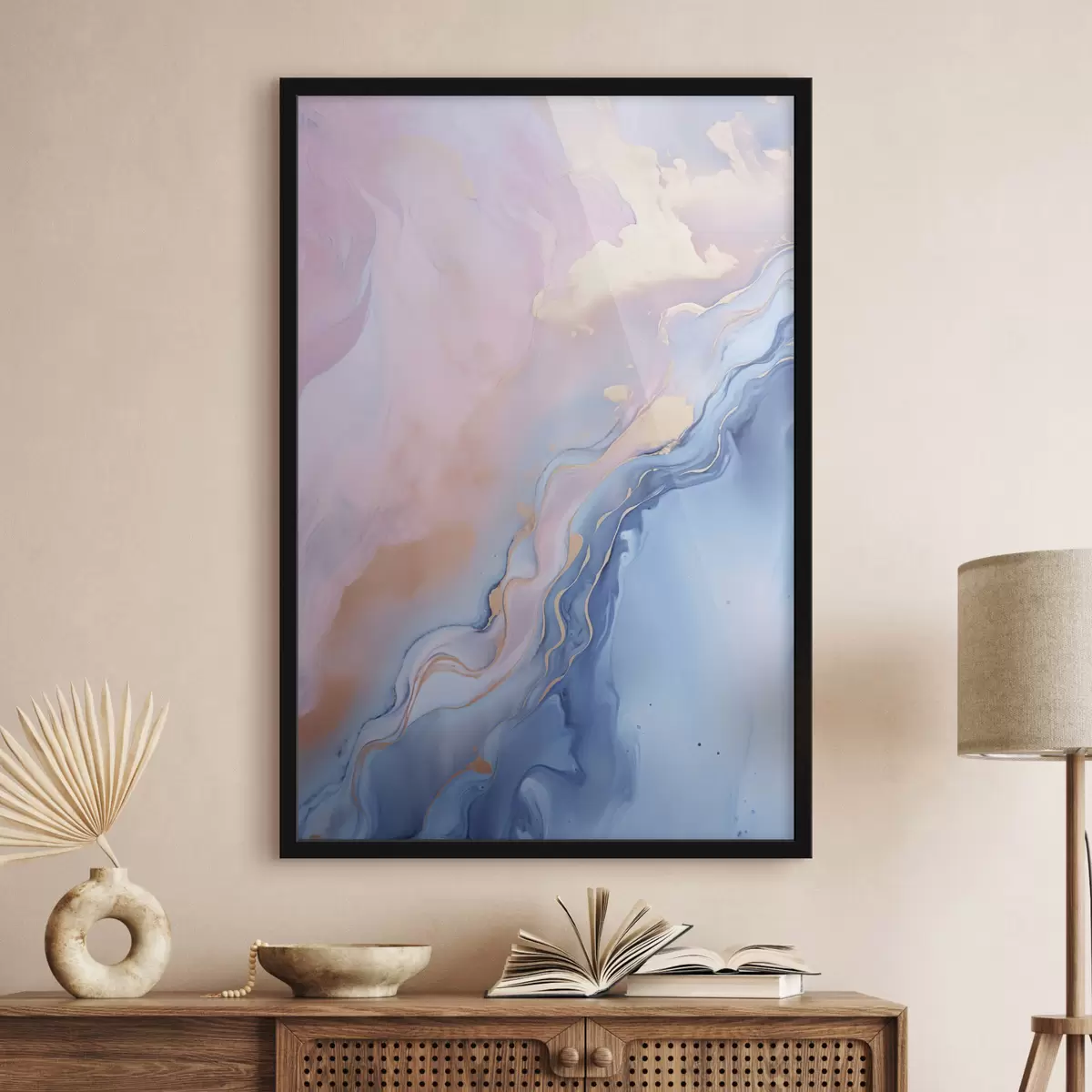 Poster Œuvre d'art fluide abstraite aux textures variées, avec des motifs tourbillonnants dans des tons roses et bleus Nr f48729
