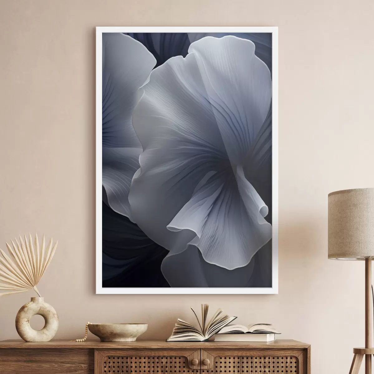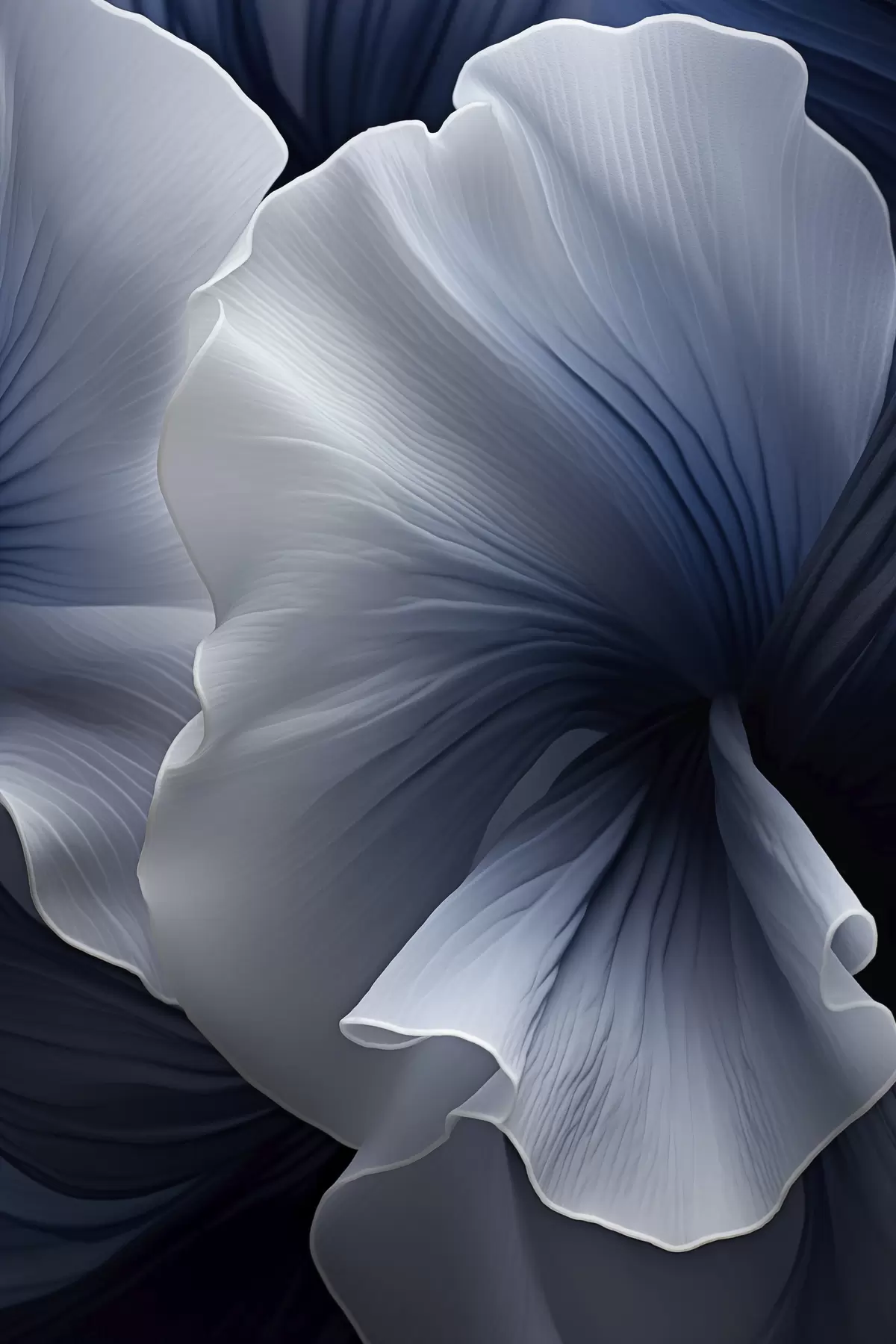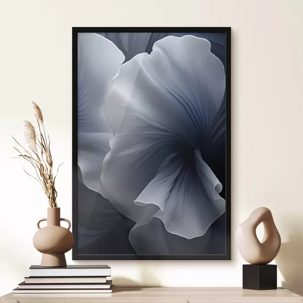 Poster Pétales de fleurs abstraites bleues et blanches sur fond sombre Nr f48731
