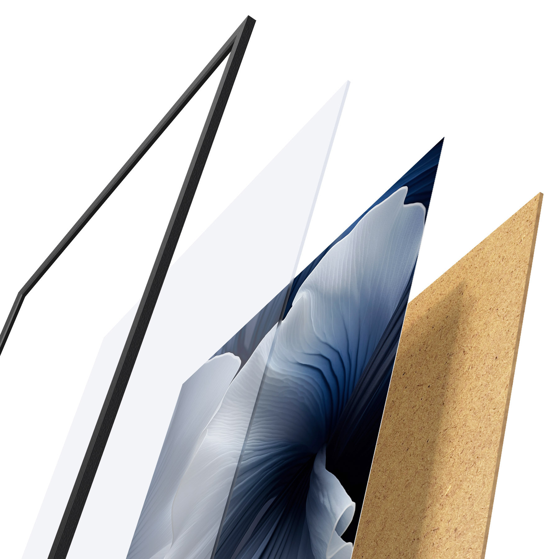 L’affiche encadrée est composée d’un cadre, d’un plexiglas, d’une image imprimée et d’un support en aggloméré. Elle est prête à être accrochée au mur grâce aux fixations situées à l’arrière.