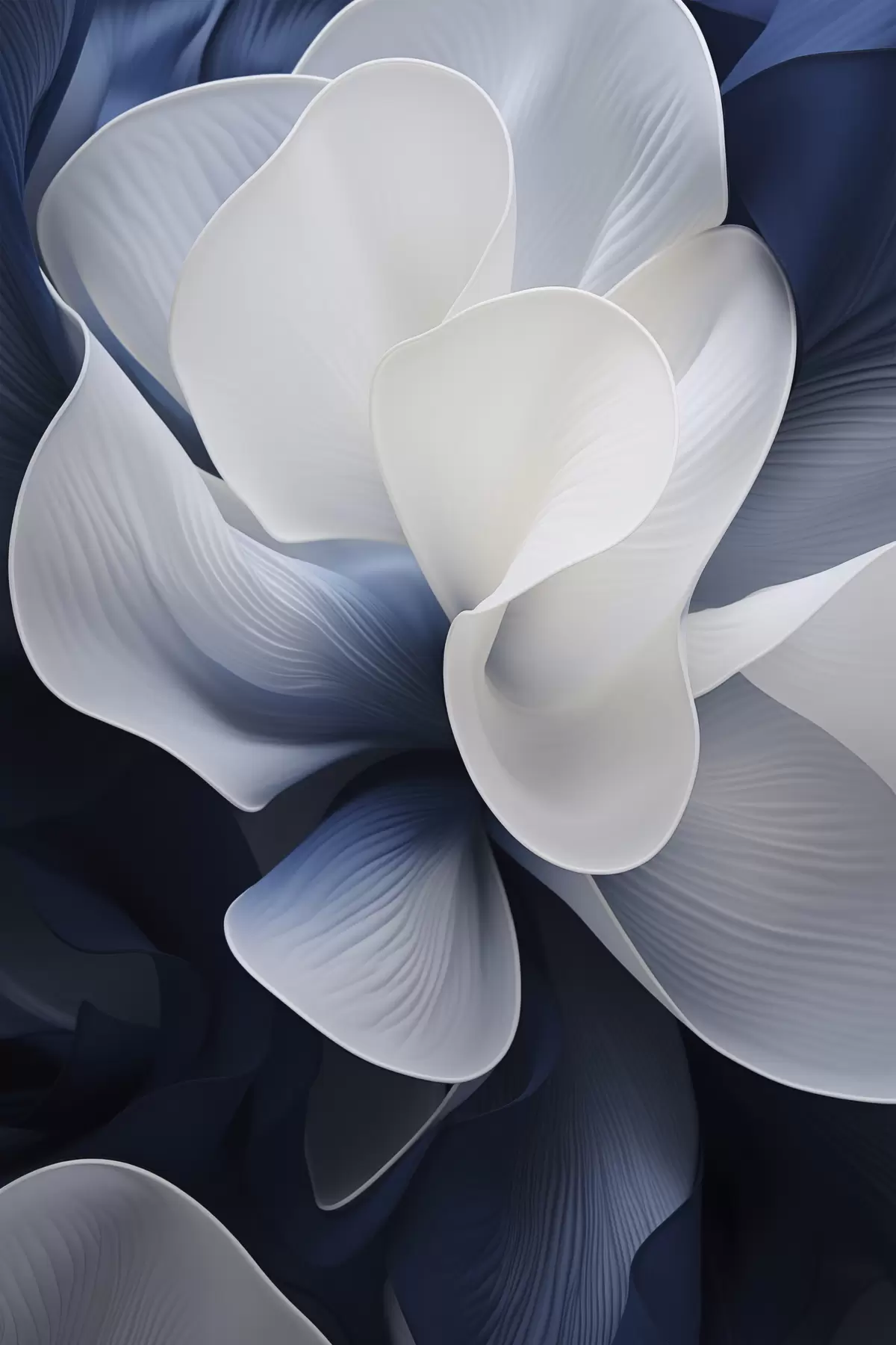 Poster Pétales de fleurs abstraites bleues et blanches sur fond sombre Nr f48732