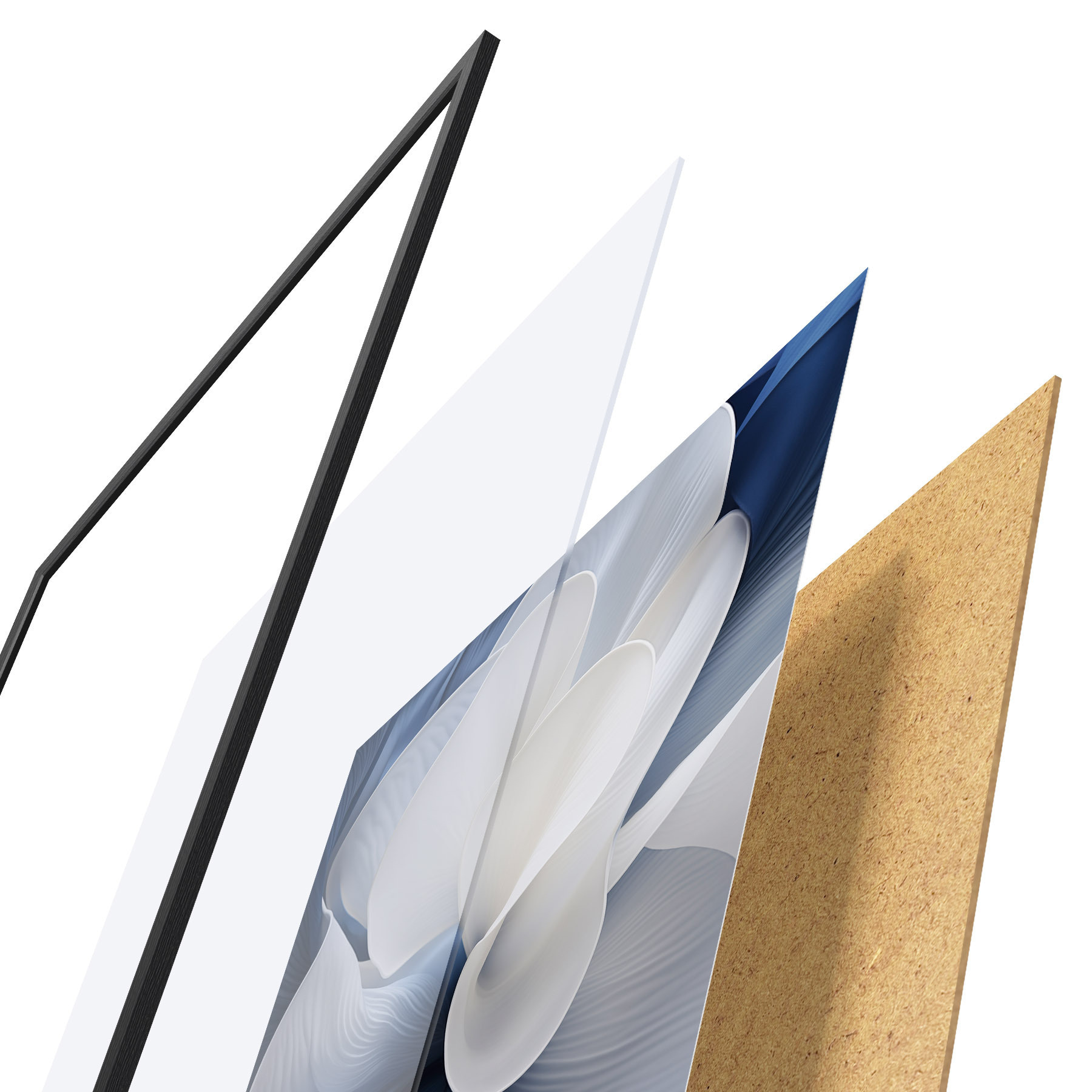 L’affiche encadrée est composée d’un cadre, d’un plexiglas, d’une image imprimée et d’un support en aggloméré. Elle est prête à être accrochée au mur grâce aux fixations situées à l’arrière.