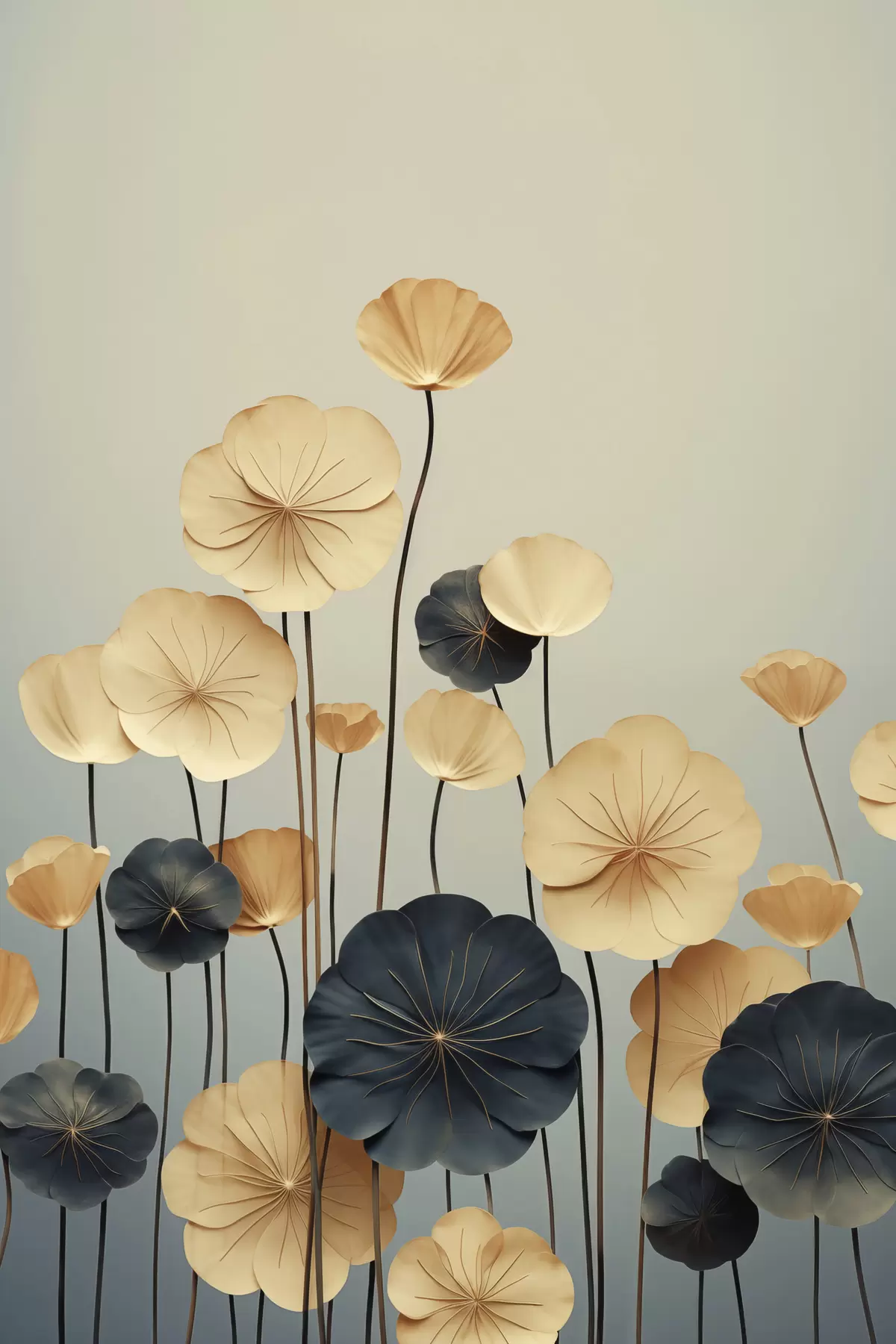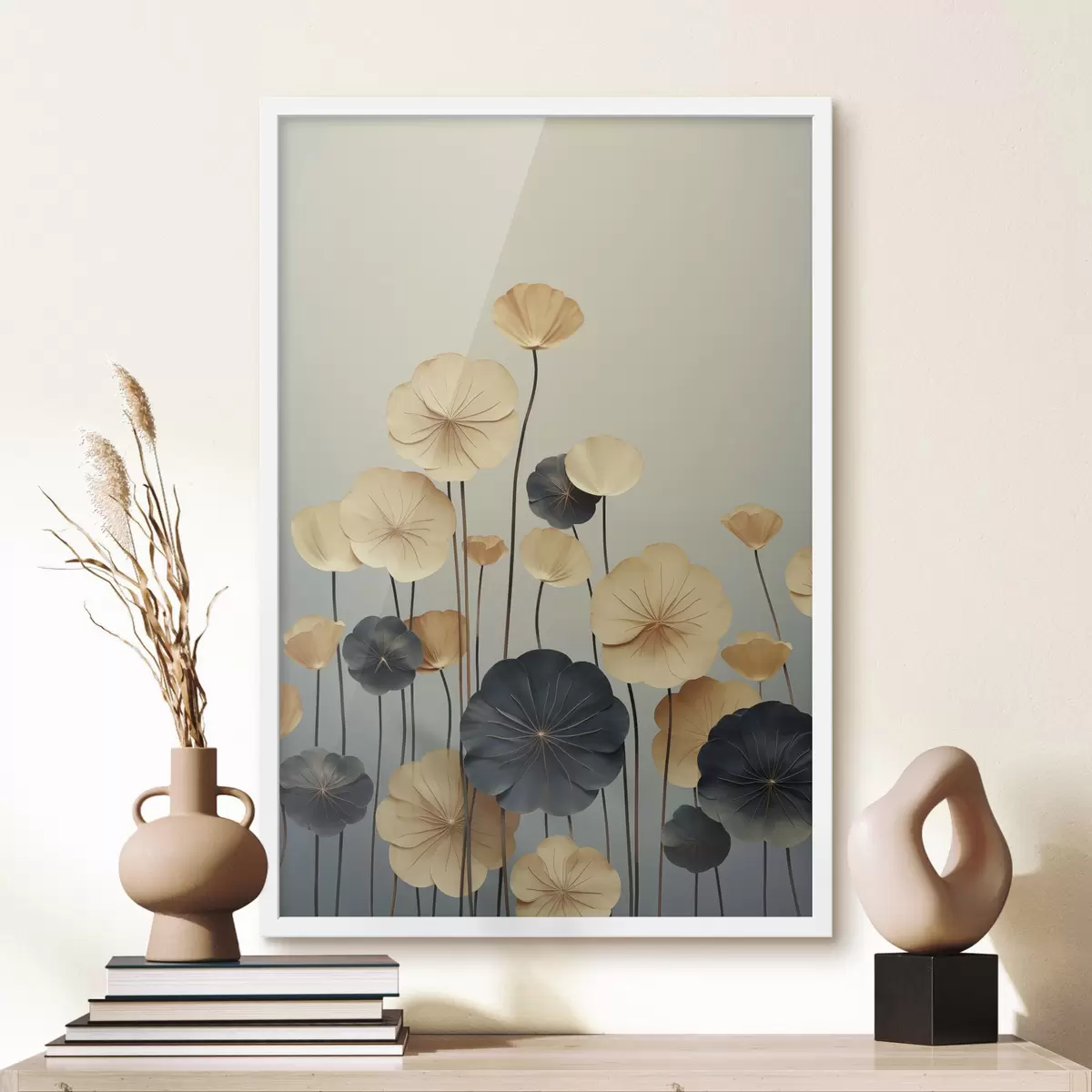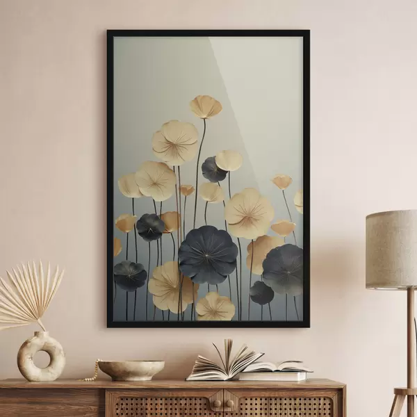 Poster Des feuilles de nénuphar sur un fond sobre de beige et de bleu foncé Nr f48734
