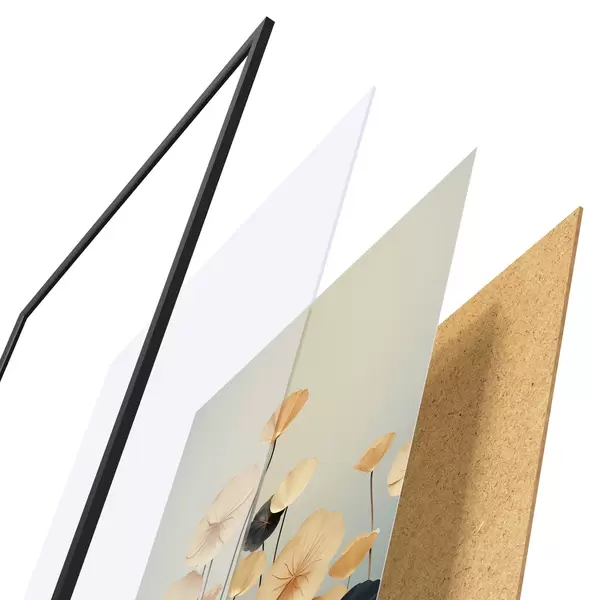 L’affiche encadrée est composée d’un cadre, d’un plexiglas, d’une image imprimée et d’un support en aggloméré. Elle est prête à être accrochée au mur grâce aux fixations situées à l’arrière.