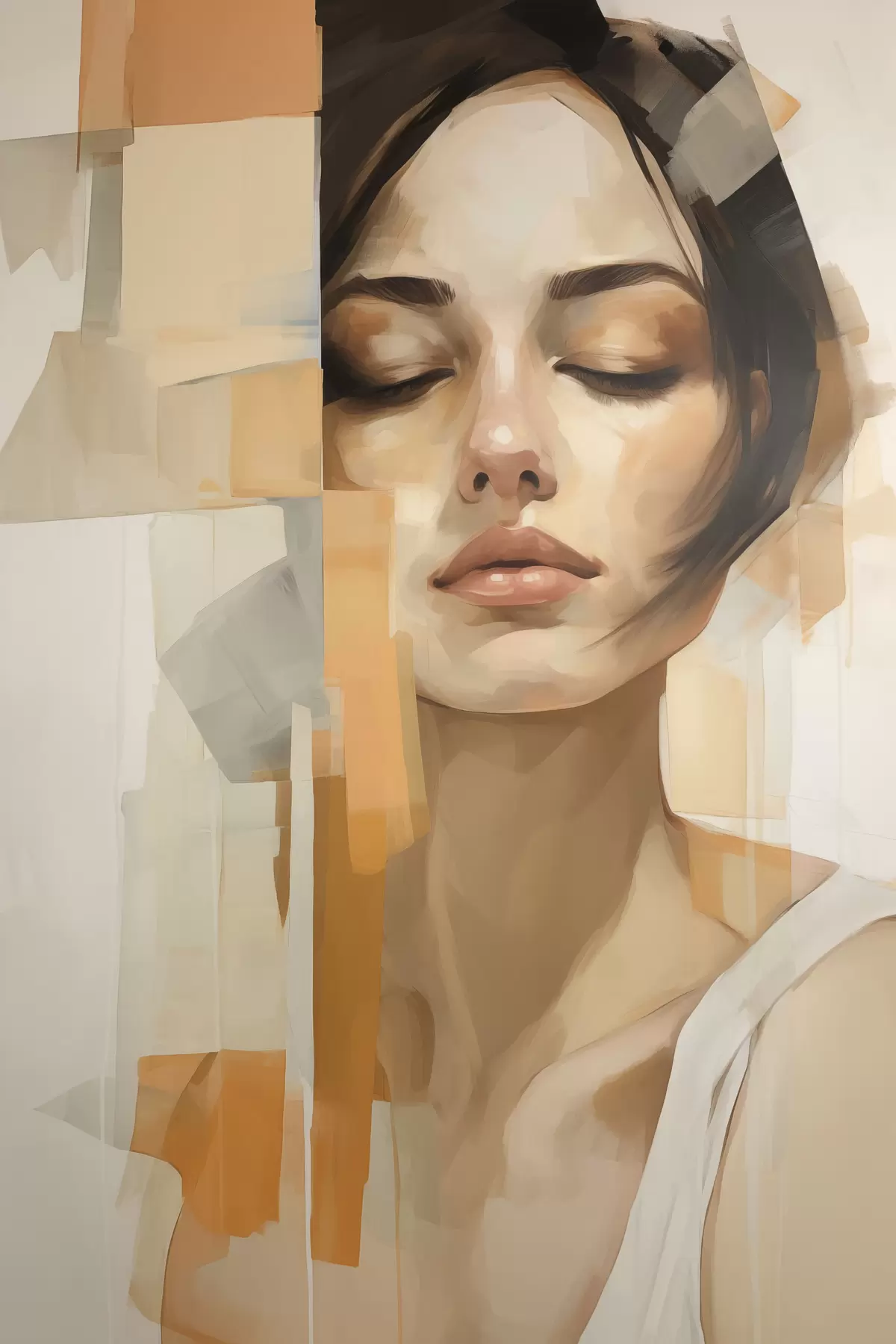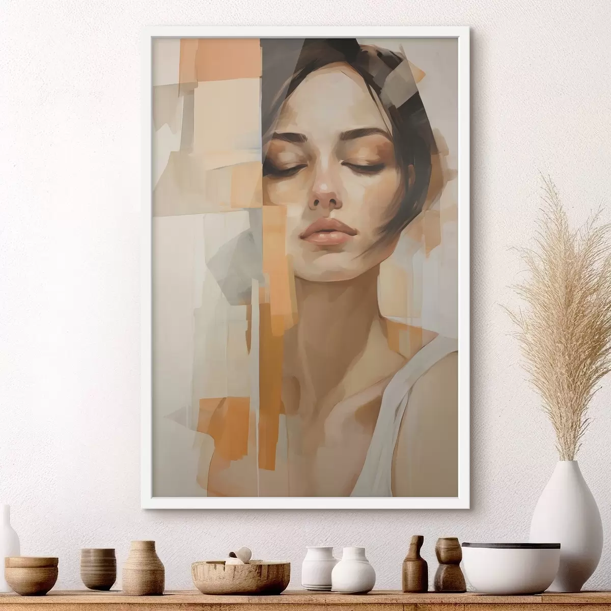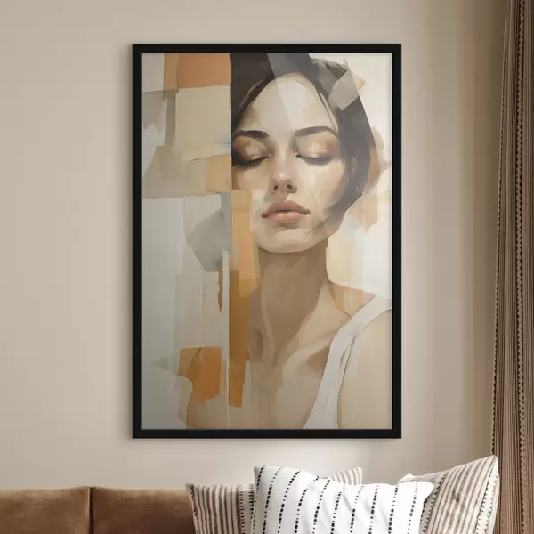 Poster Portrait abstrait d'une femme avec des formes orange et beiges Nr f48736