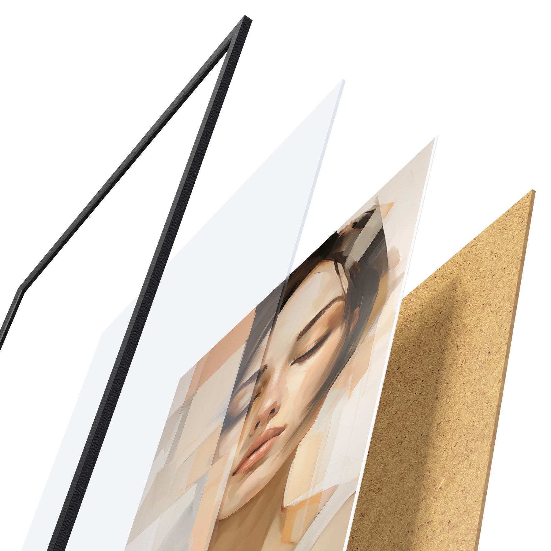 L’affiche encadrée est composée d’un cadre, d’un plexiglas, d’une image imprimée et d’un support en aggloméré. Elle est prête à être accrochée au mur grâce aux fixations situées à l’arrière.