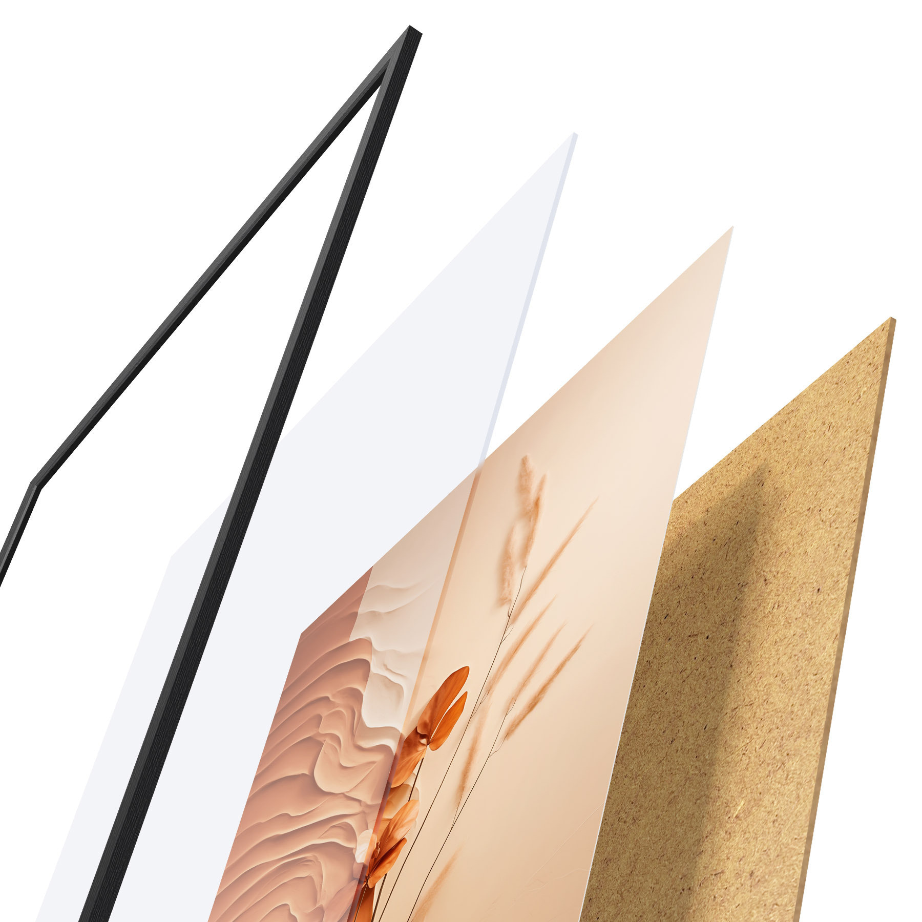 L’affiche encadrée est composée d’un cadre, d’un plexiglas, d’une image imprimée et d’un support en aggloméré. Elle est prête à être accrochée au mur grâce aux fixations situées à l’arrière.