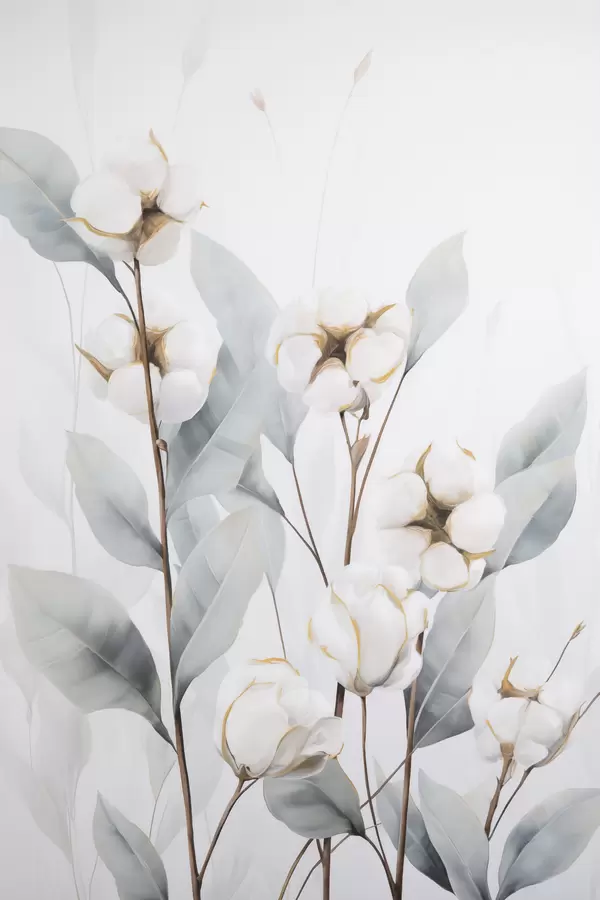 Poster Un cotonnier blanc aux feuilles bleu-vert pâle sur un fond clair f48744