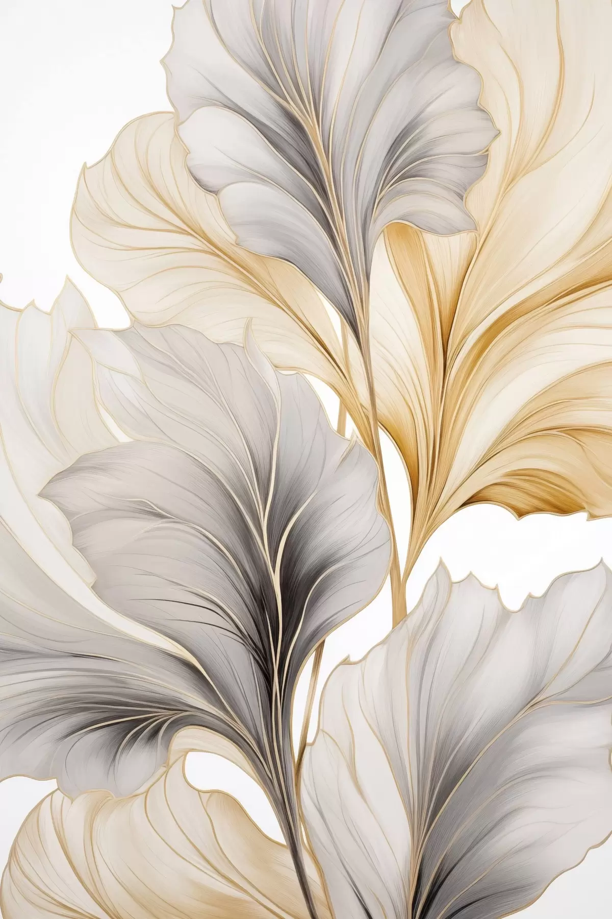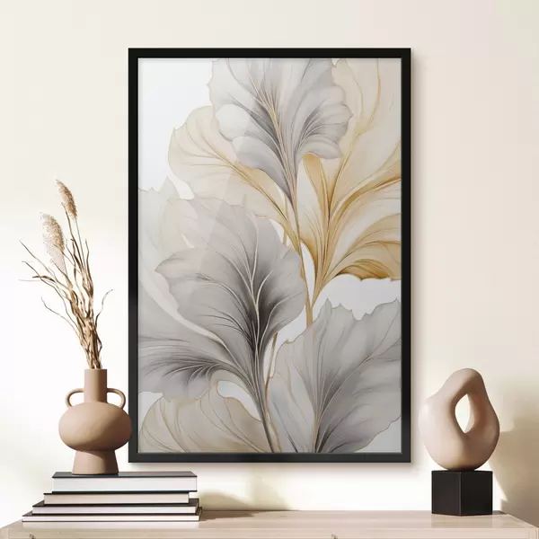 Poster De grandes feuilles translucides dans des tons de gris et de jaune Nr f48745