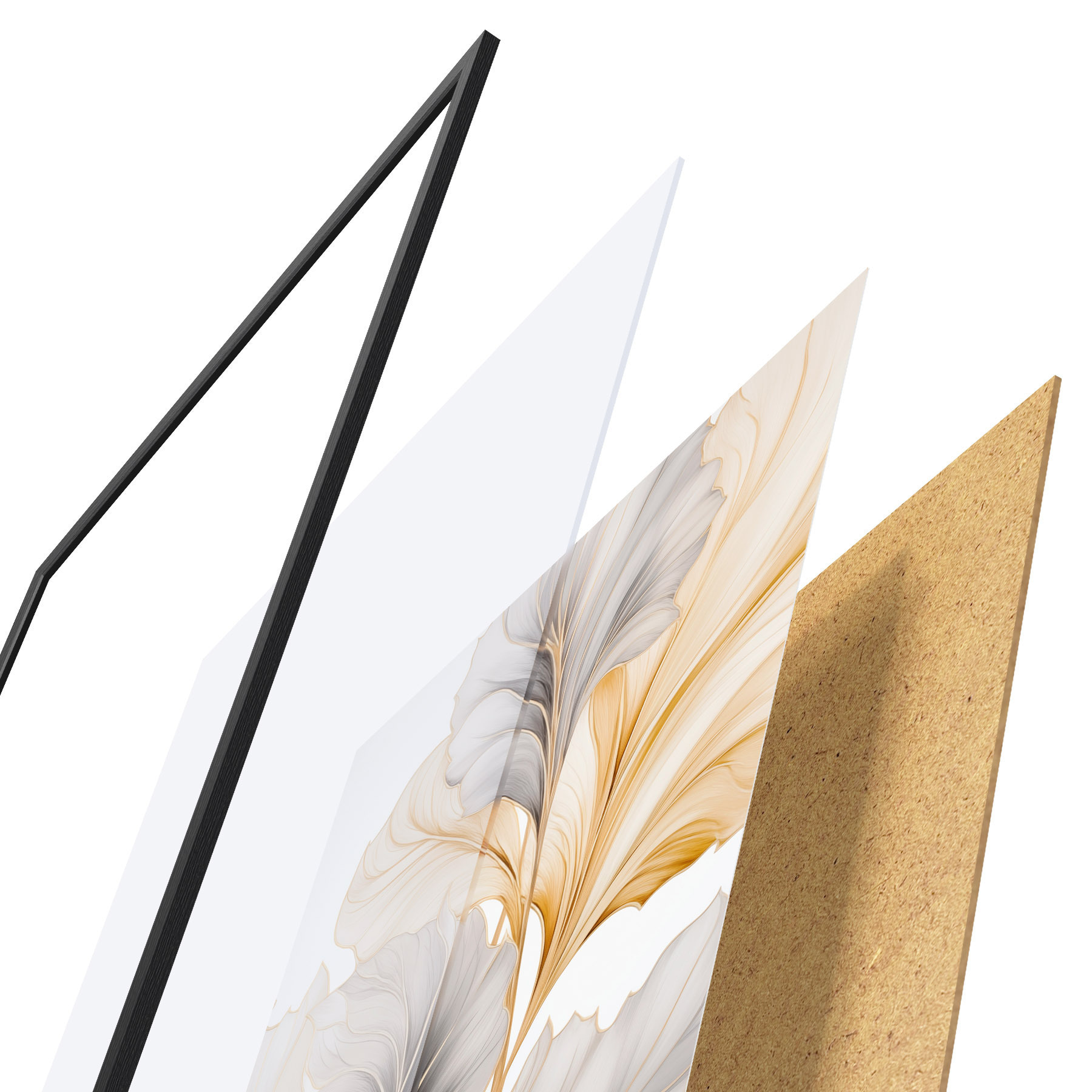 L’affiche encadrée est composée d’un cadre, d’un plexiglas, d’une image imprimée et d’un support en aggloméré. Elle est prête à être accrochée au mur grâce aux fixations situées à l’arrière.