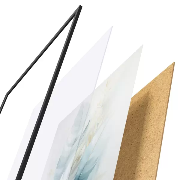L’affiche encadrée est composée d’un cadre, d’un plexiglas, d’une image imprimée et d’un support en aggloméré. Elle est prête à être accrochée au mur grâce aux fixations situées à l’arrière.