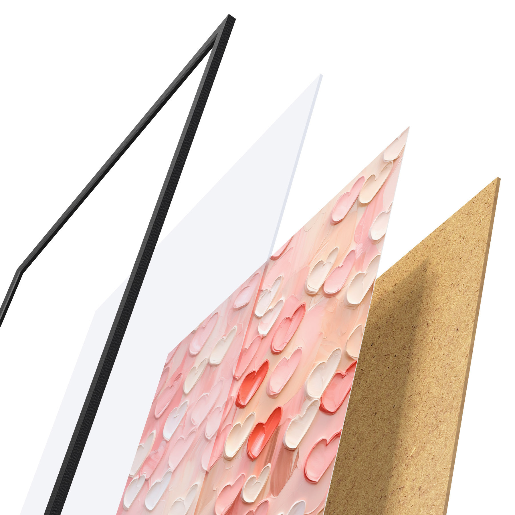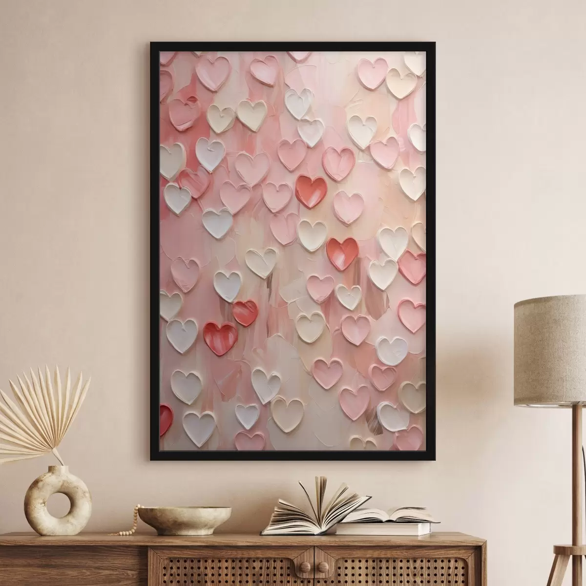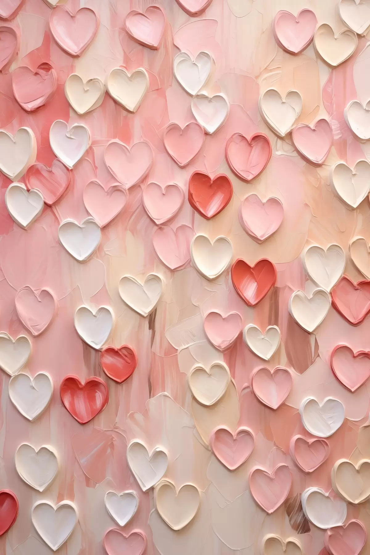 Poster Des cœurs dans différentes nuances de pêche et de rose, réalisés dans un style texturé et peint Nr f48752