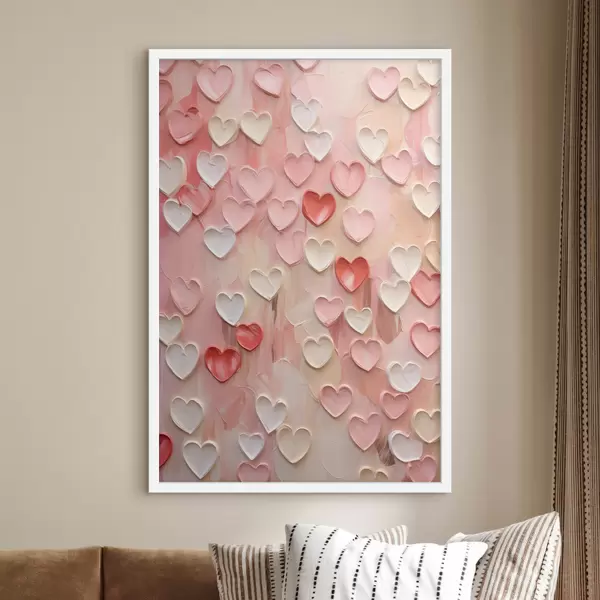 Poster Des cœurs dans différentes nuances de pêche et de rose, réalisés dans un style texturé et peint f48752