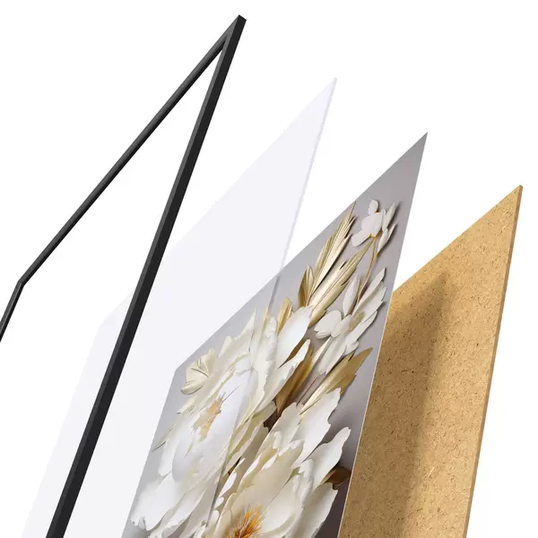 L’affiche encadrée est composée d’un cadre, d’un plexiglas, d’une image imprimée et d’un support en aggloméré. Elle est prête à être accrochée au mur grâce aux fixations situées à l’arrière.