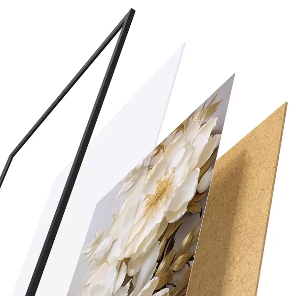 L’affiche encadrée est composée d’un cadre, d’un plexiglas, d’une image imprimée et d’un support en aggloméré. Elle est prête à être accrochée au mur grâce aux fixations situées à l’arrière.