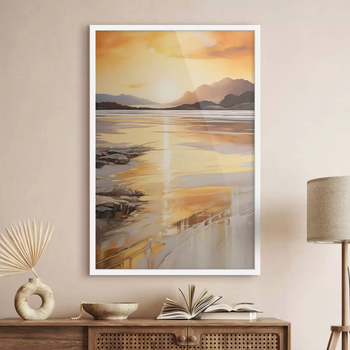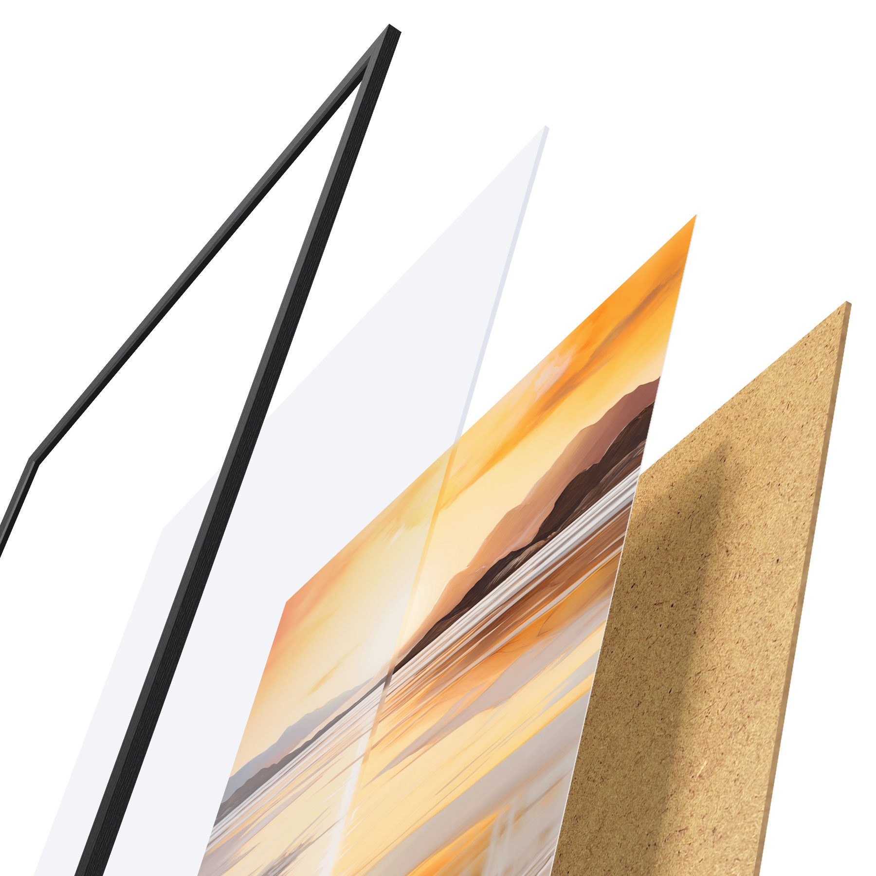 L’affiche encadrée est composée d’un cadre, d’un plexiglas, d’une image imprimée et d’un support en aggloméré. Elle est prête à être accrochée au mur grâce aux fixations situées à l’arrière.