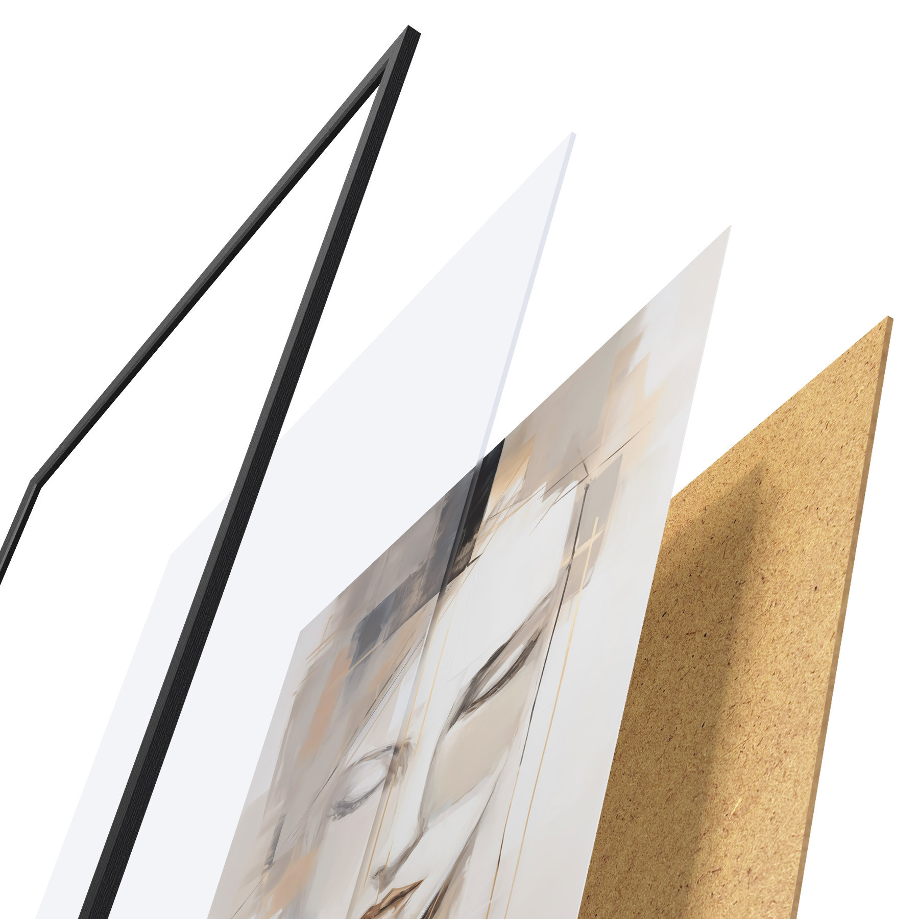 L’affiche encadrée est composée d’un cadre, d’un plexiglas, d’une image imprimée et d’un support en aggloméré. Elle est prête à être accrochée au mur grâce aux fixations situées à l’arrière.