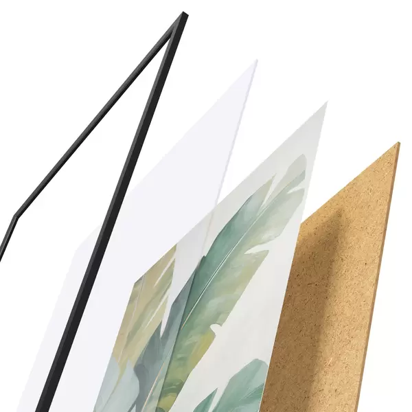 L’affiche encadrée est composée d’un cadre, d’un plexiglas, d’une image imprimée et d’un support en aggloméré. Elle est prête à être accrochée au mur grâce aux fixations situées à l’arrière.