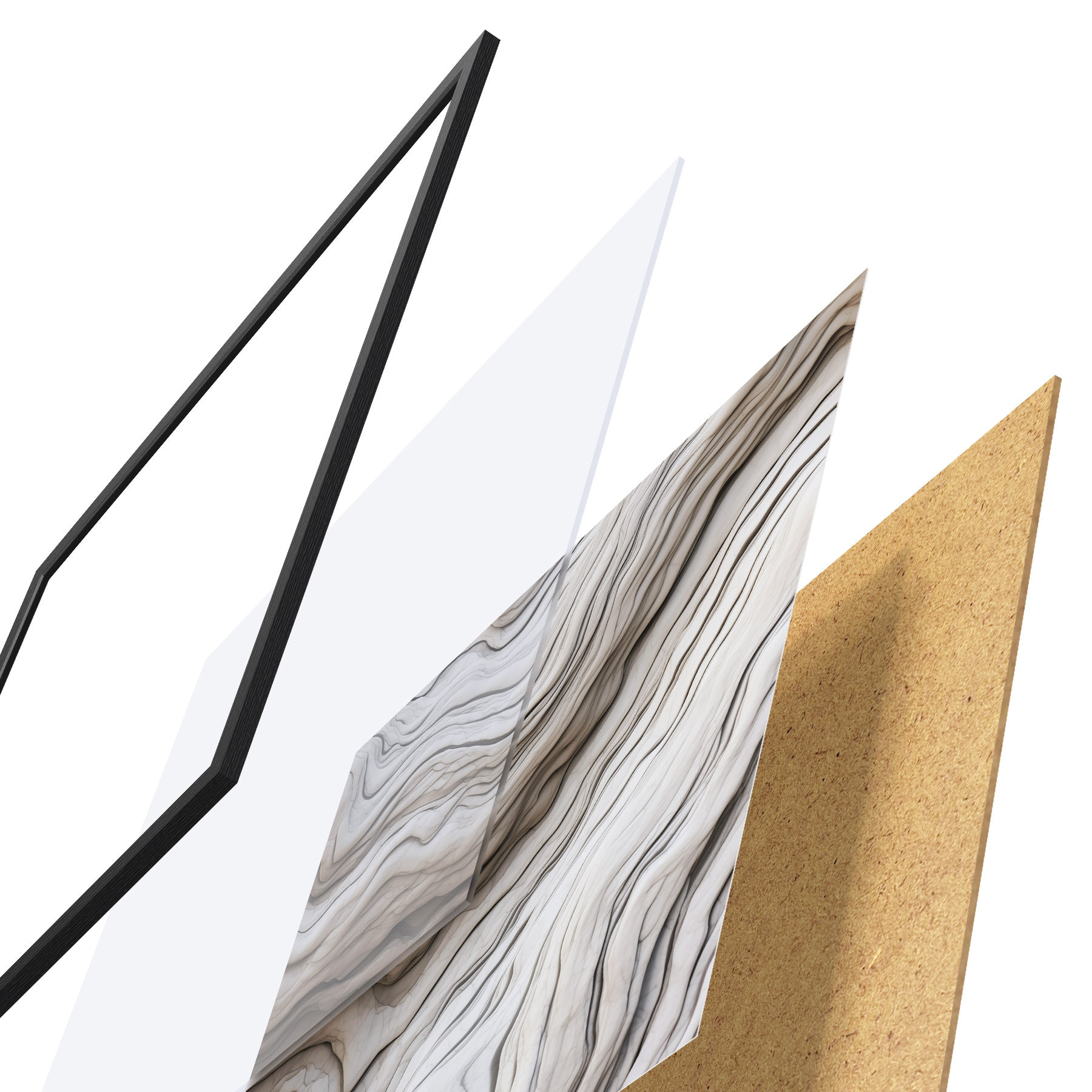 L’affiche encadrée est composée d’un cadre, d’un plexiglas, d’une image imprimée et d’un support en aggloméré. Elle est prête à être accrochée au mur grâce aux fixations situées à l’arrière.