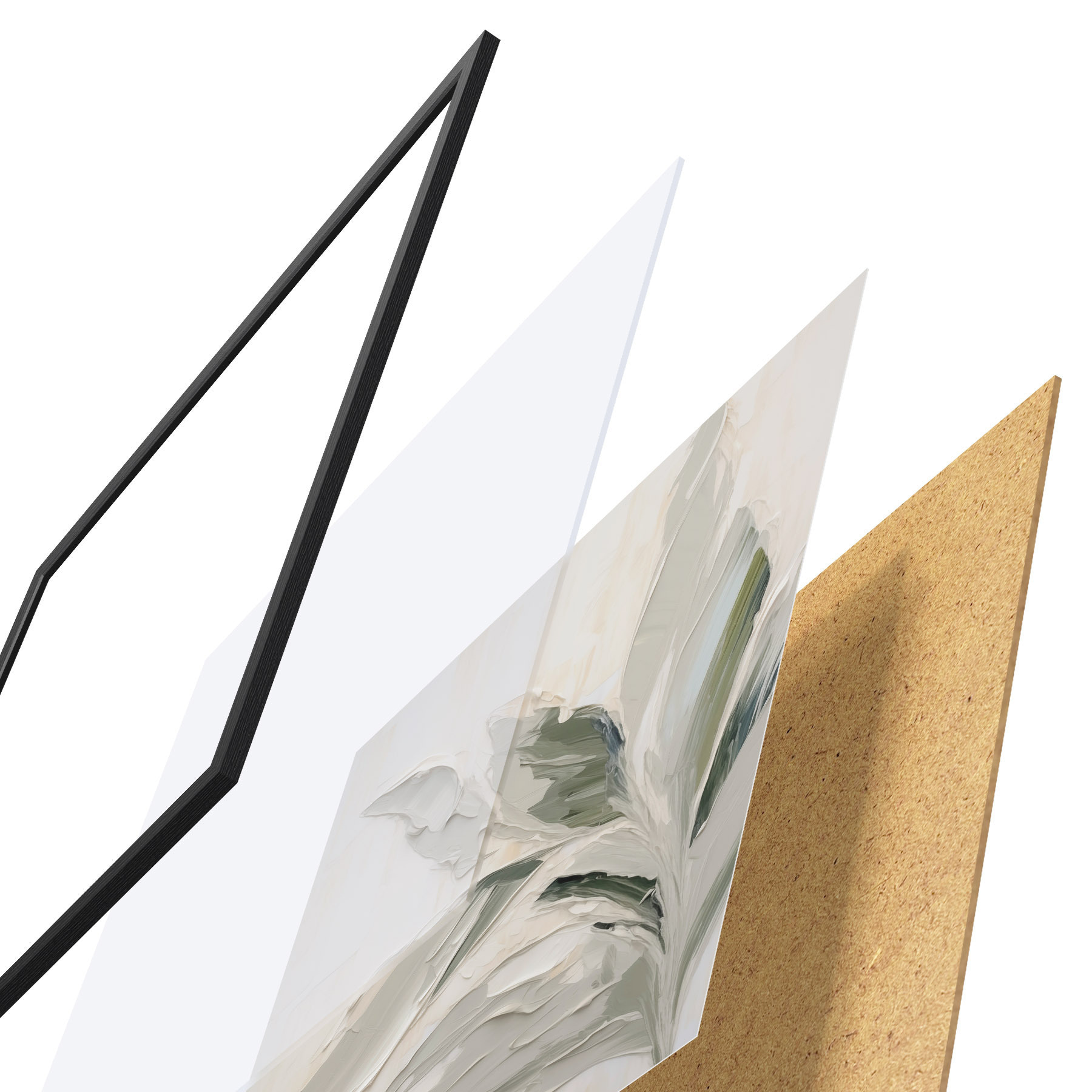 L’affiche encadrée est composée d’un cadre, d’un plexiglas, d’une image imprimée et d’un support en aggloméré. Elle est prête à être accrochée au mur grâce aux fixations situées à l’arrière.