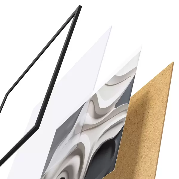 L’affiche encadrée est composée d’un cadre, d’un plexiglas, d’une image imprimée et d’un support en aggloméré. Elle est prête à être accrochée au mur grâce aux fixations situées à l’arrière.