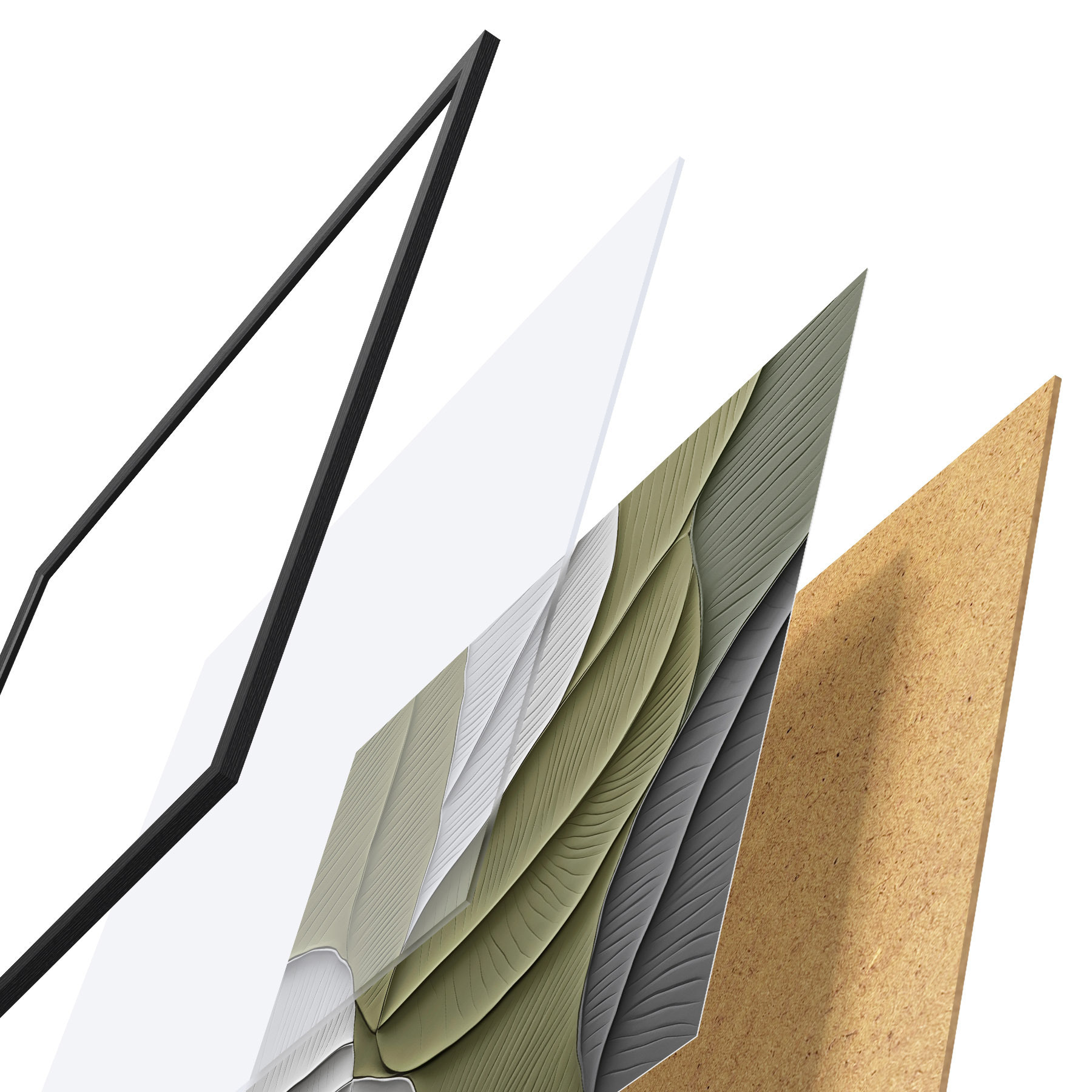 L’affiche encadrée est composée d’un cadre, d’un plexiglas, d’une image imprimée et d’un support en aggloméré. Elle est prête à être accrochée au mur grâce aux fixations situées à l’arrière.