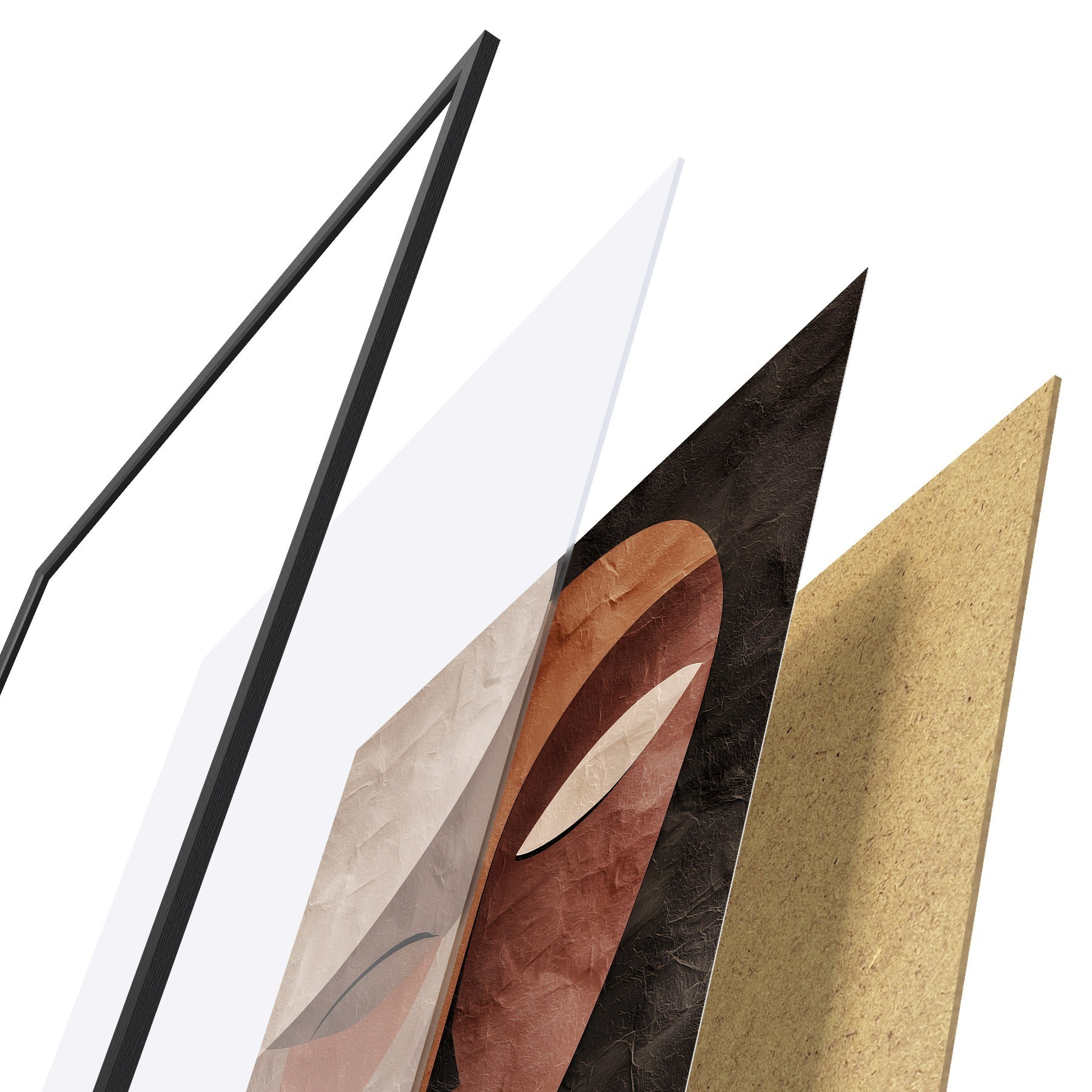 L’affiche encadrée est composée d’un cadre, d’un plexiglas, d’une image imprimée et d’un support en aggloméré. Elle est prête à être accrochée au mur grâce aux fixations situées à l’arrière.