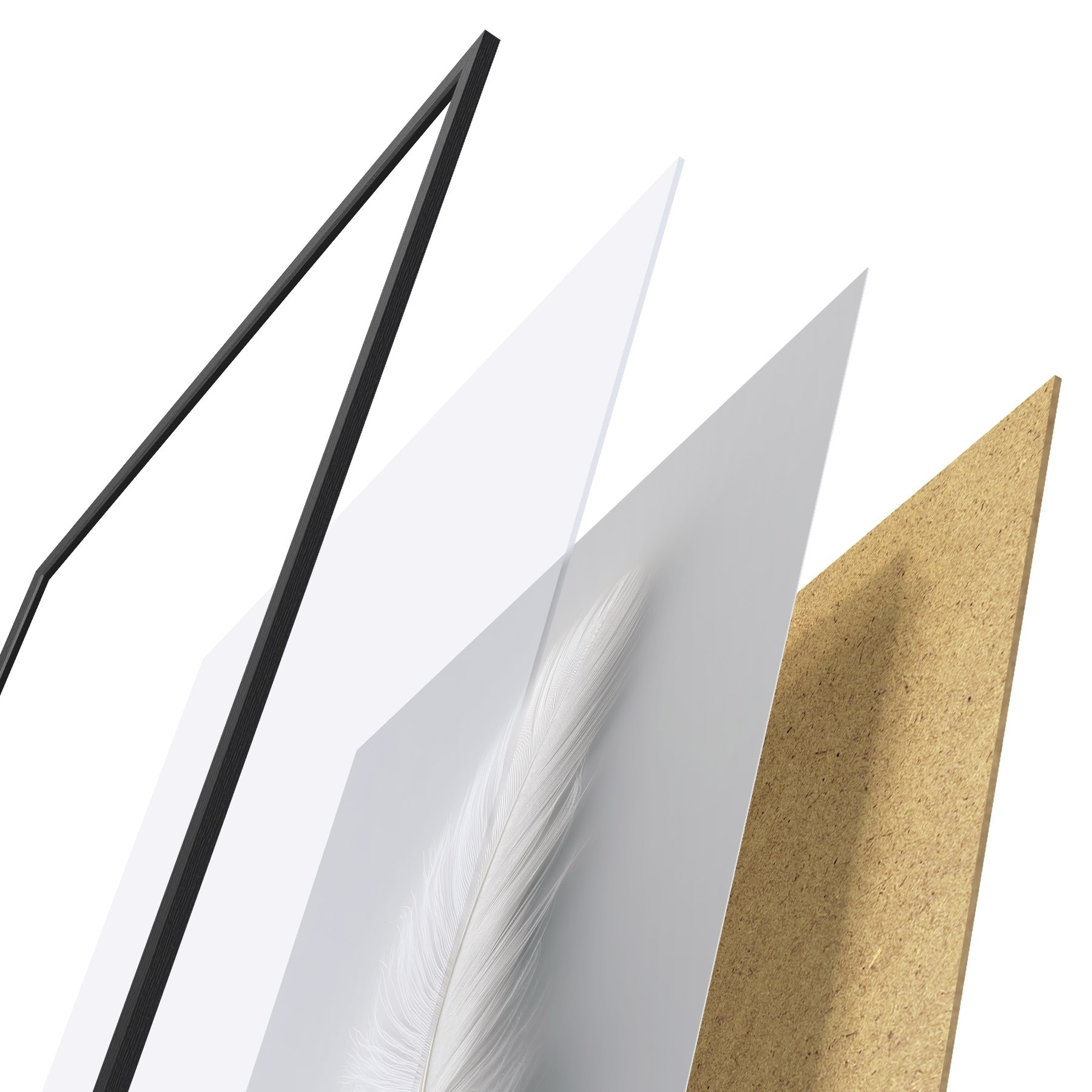 L’affiche encadrée est composée d’un cadre, d’un plexiglas, d’une image imprimée et d’un support en aggloméré. Elle est prête à être accrochée au mur grâce aux fixations situées à l’arrière.