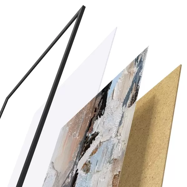 L’affiche encadrée est composée d’un cadre, d’un plexiglas, d’une image imprimée et d’un support en aggloméré. Elle est prête à être accrochée au mur grâce aux fixations situées à l’arrière.
