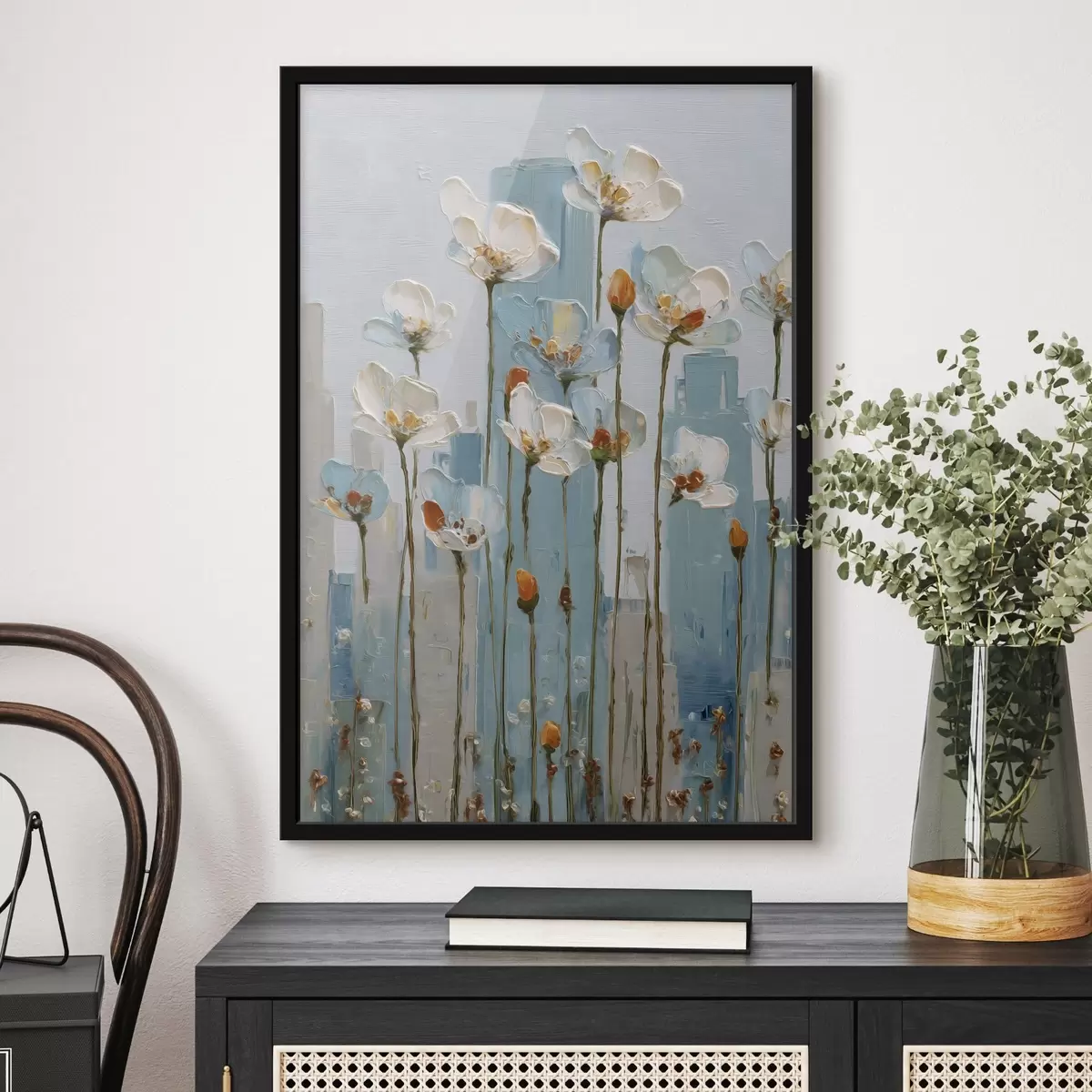 Poster des fleurs sur fond urbain, dans le style de la peinture à l'huile Nr f48785