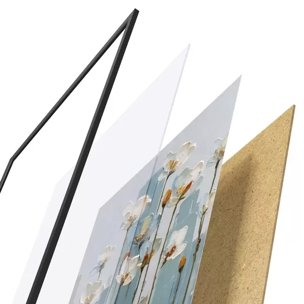 L’affiche encadrée est composée d’un cadre, d’un plexiglas, d’une image imprimée et d’un support en aggloméré. Elle est prête à être accrochée au mur grâce aux fixations situées à l’arrière.