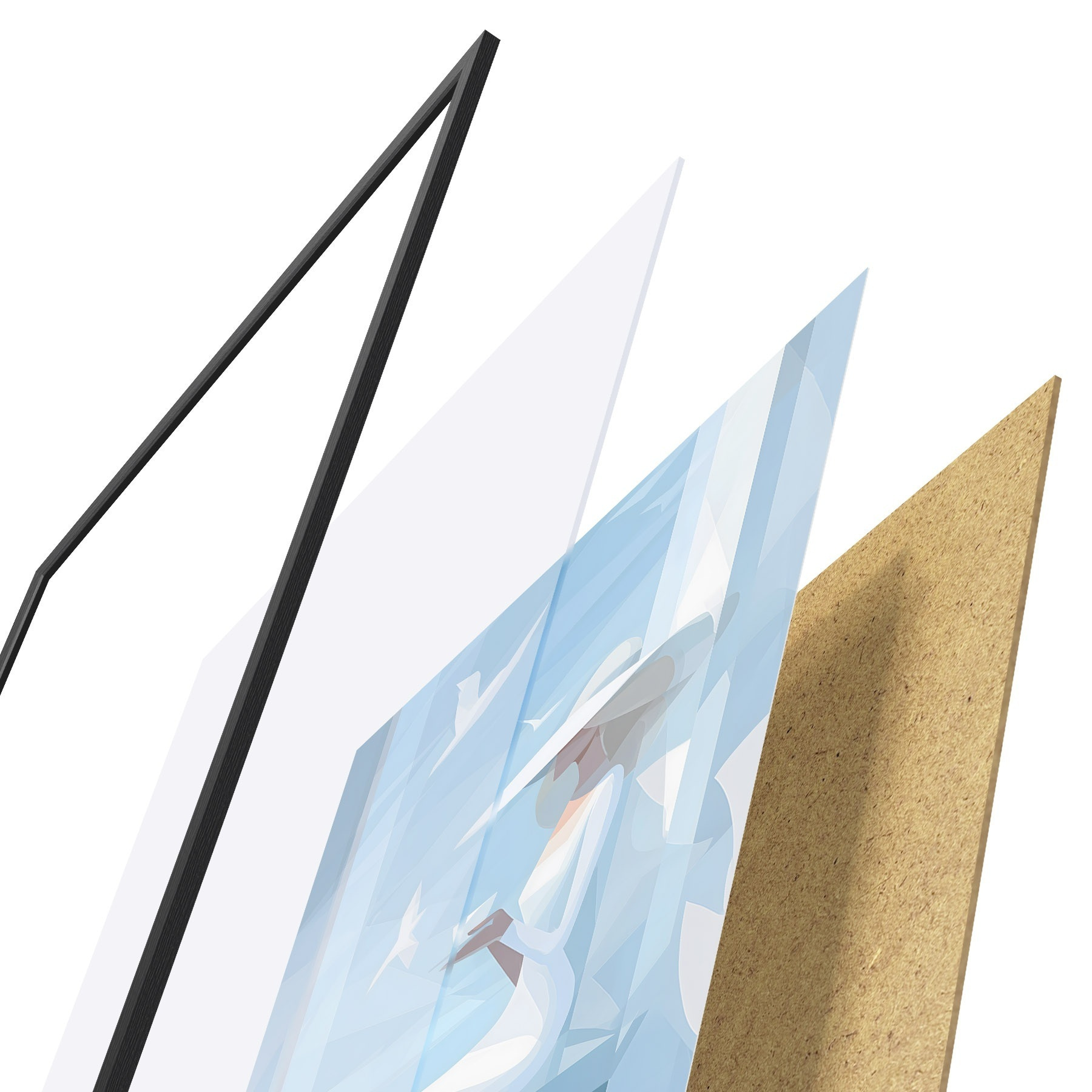 L’affiche encadrée est composée d’un cadre, d’un plexiglas, d’une image imprimée et d’un support en aggloméré. Elle est prête à être accrochée au mur grâce aux fixations situées à l’arrière.