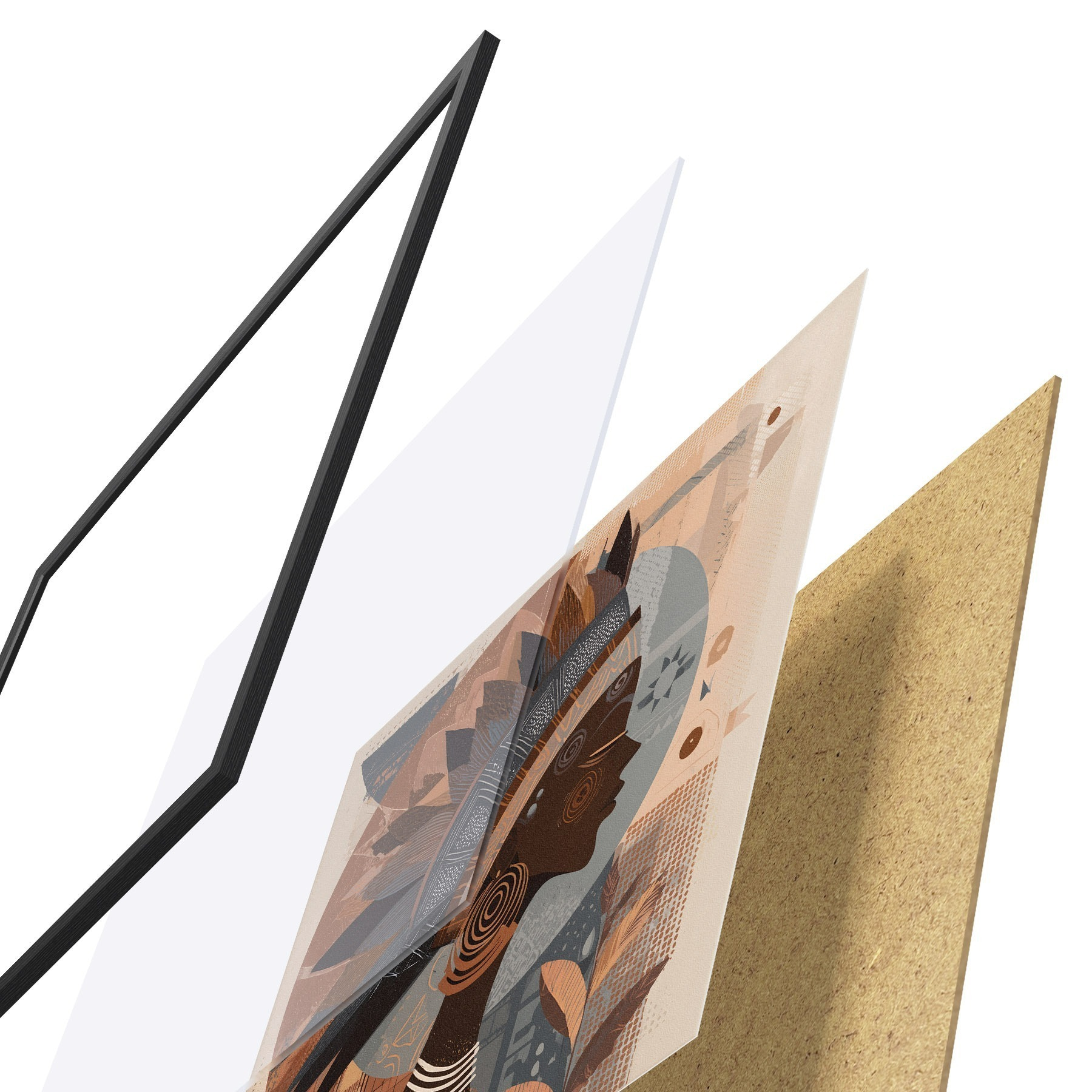L’affiche encadrée est composée d’un cadre, d’un plexiglas, d’une image imprimée et d’un support en aggloméré. Elle est prête à être accrochée au mur grâce aux fixations situées à l’arrière.