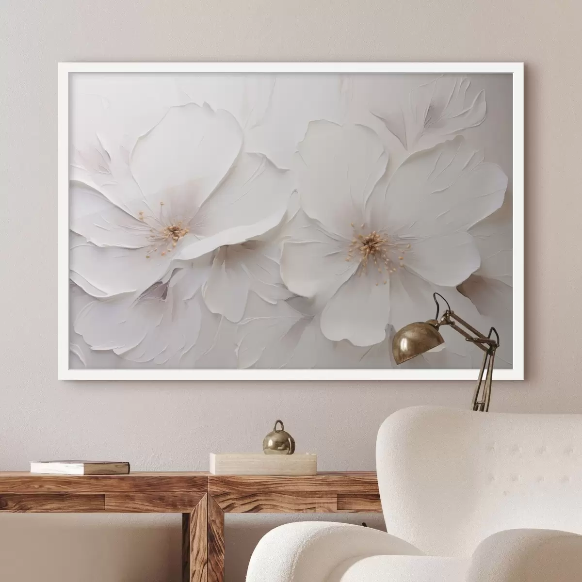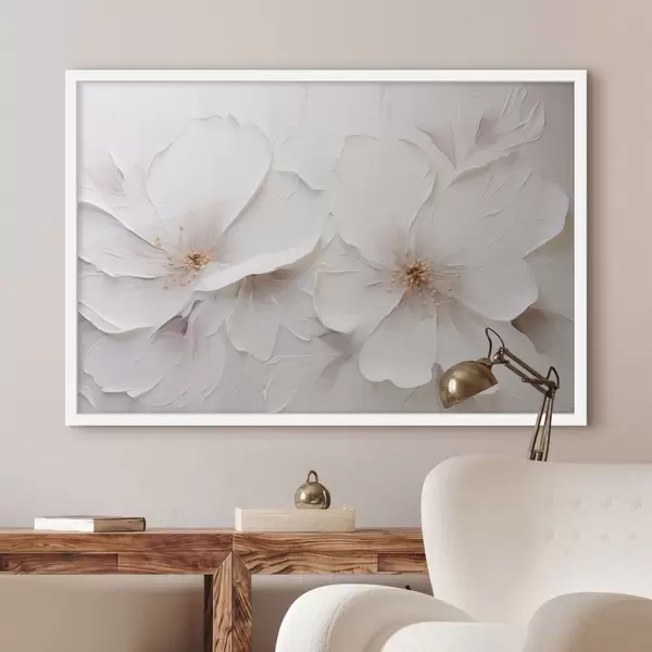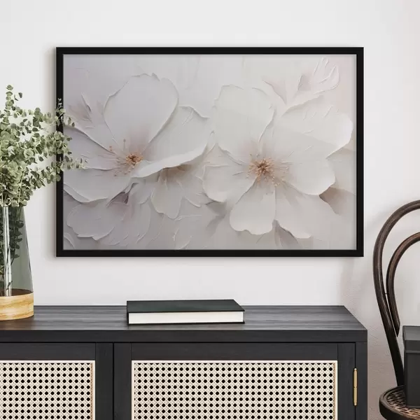 Poster Fleurs blanches en relief dans un style minimaliste, avec des ombres douces f48796