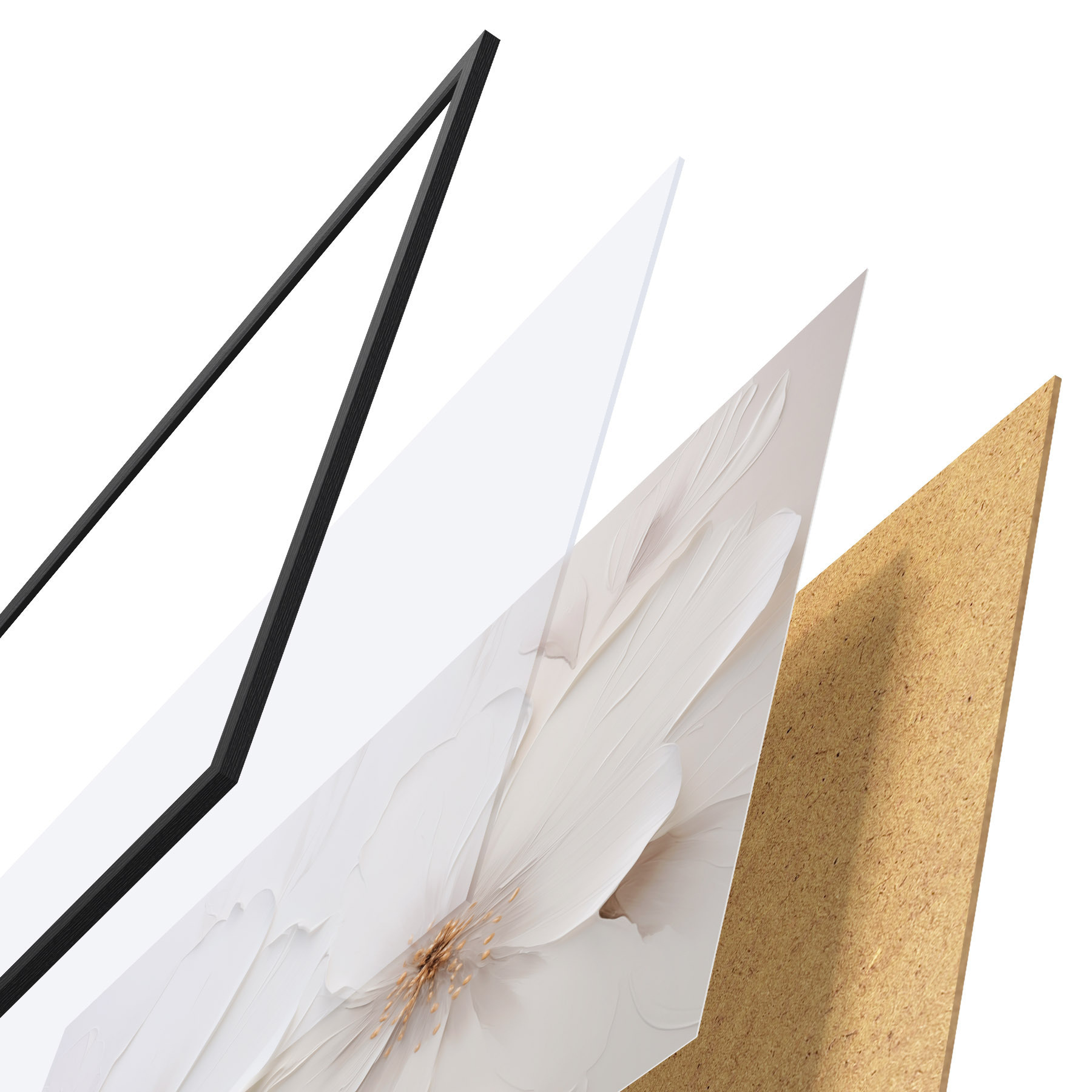L’affiche encadrée est composée d’un cadre, d’un plexiglas, d’une image imprimée et d’un support en aggloméré. Elle est prête à être accrochée au mur grâce aux fixations situées à l’arrière.