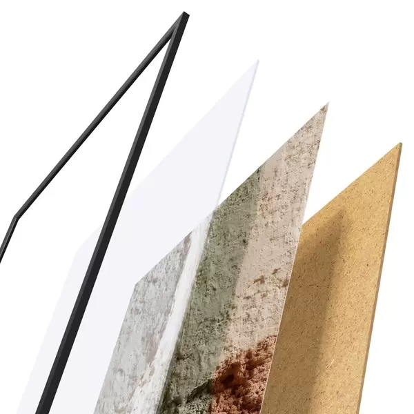 L’affiche encadrée est composée d’un cadre, d’un plexiglas, d’une image imprimée et d’un support en aggloméré. Elle est prête à être accrochée au mur grâce aux fixations situées à l’arrière.