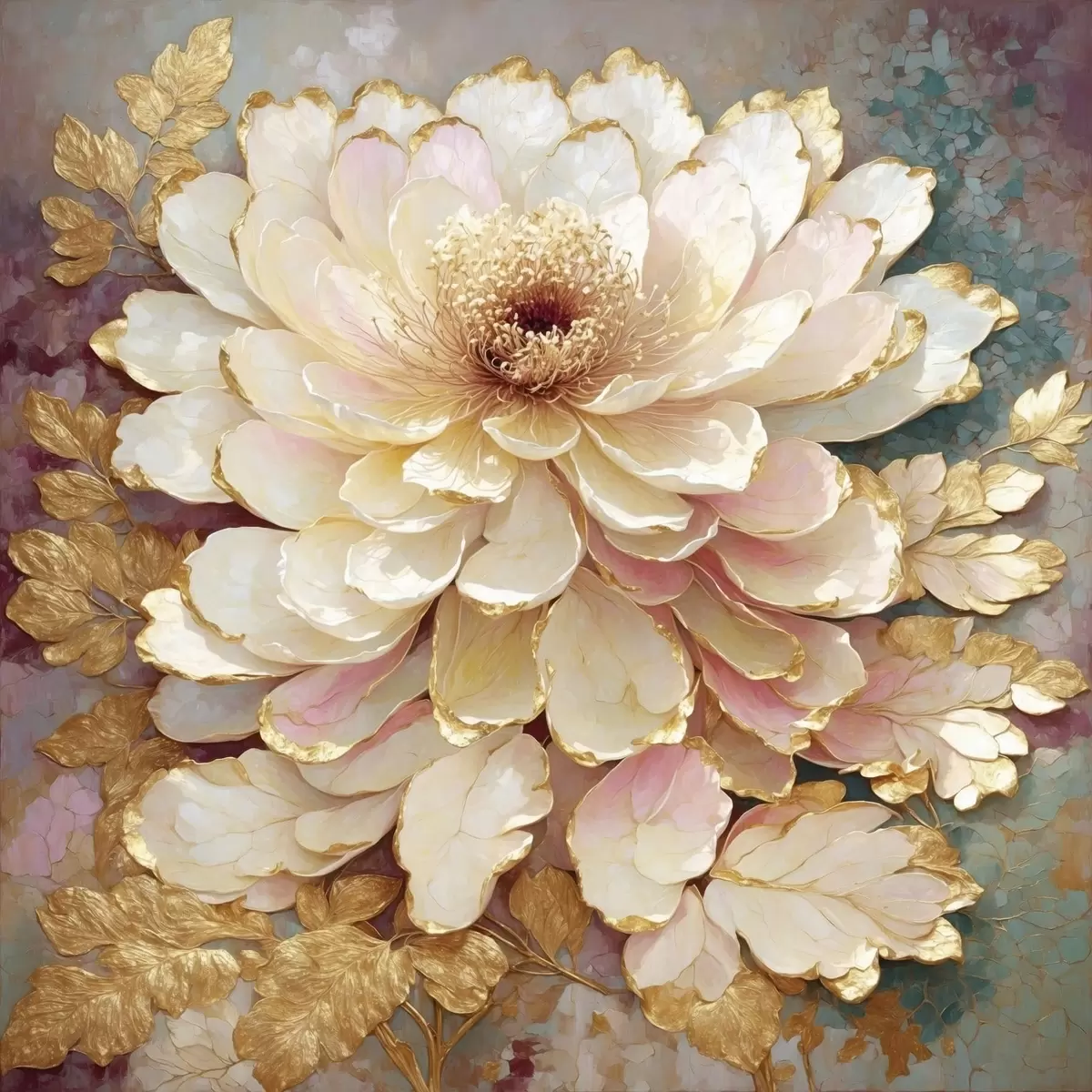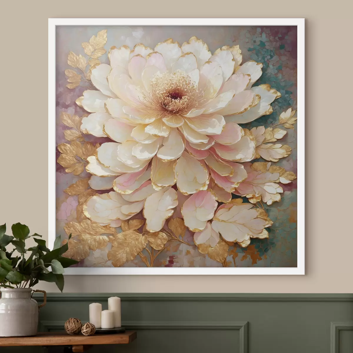 Poster Fleur de style chinoiserie avec des feuilles et des détails ouvragés f48804