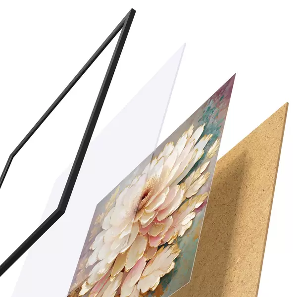 L’affiche encadrée est composée d’un cadre, d’un plexiglas, d’une image imprimée et d’un support en aggloméré. Elle est prête à être accrochée au mur grâce aux fixations situées à l’arrière.