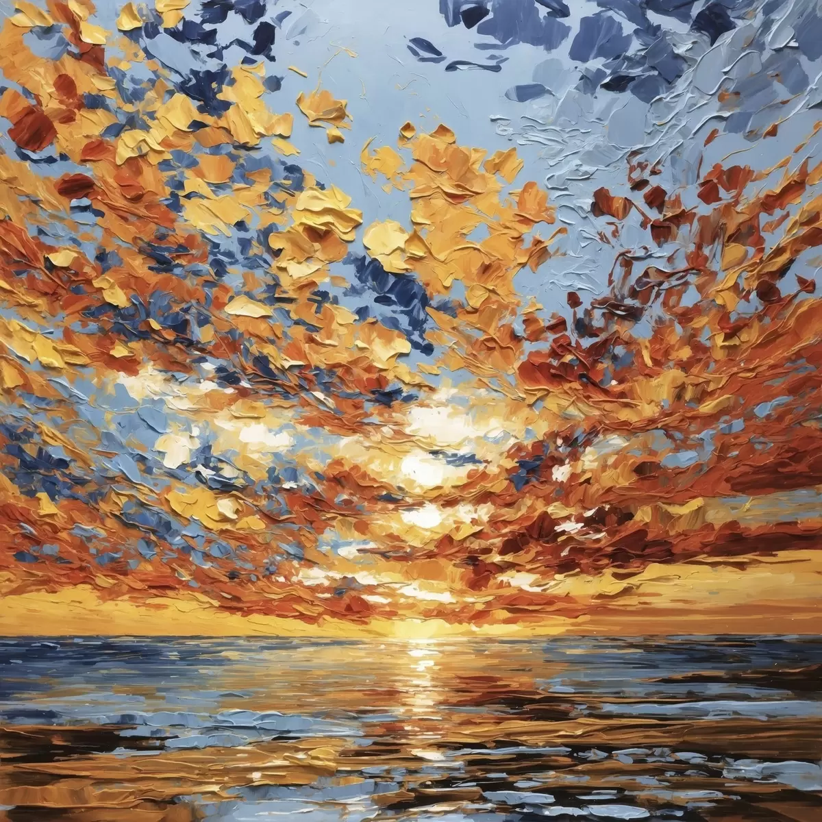 Poster Coucher de soleil spectaculaire sur la mer, dans le style impasto Nr f48810