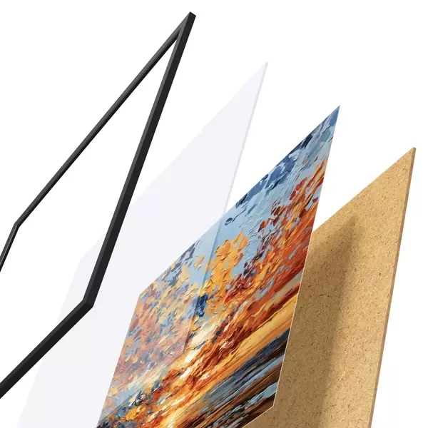 L’affiche encadrée est composée d’un cadre, d’un plexiglas, d’une image imprimée et d’un support en aggloméré. Elle est prête à être accrochée au mur grâce aux fixations situées à l’arrière.
