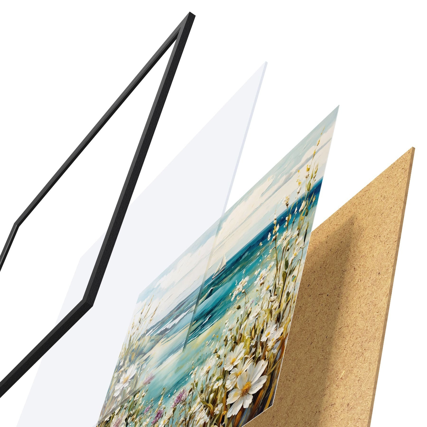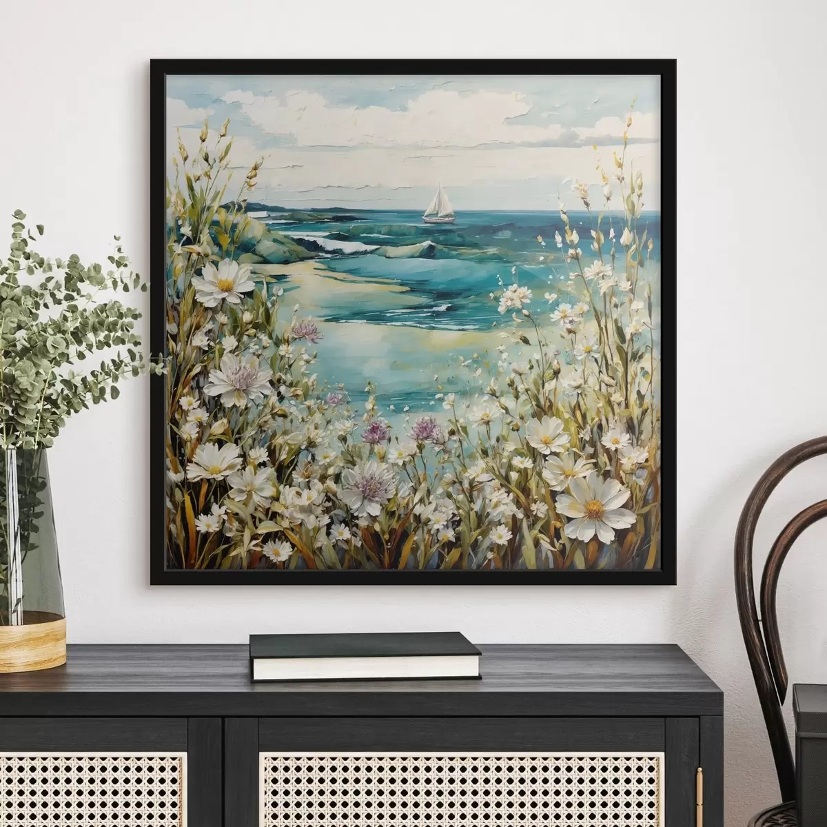 Poster Impressionnisme : bord de mer avec voilier et fleurs Nr f48813