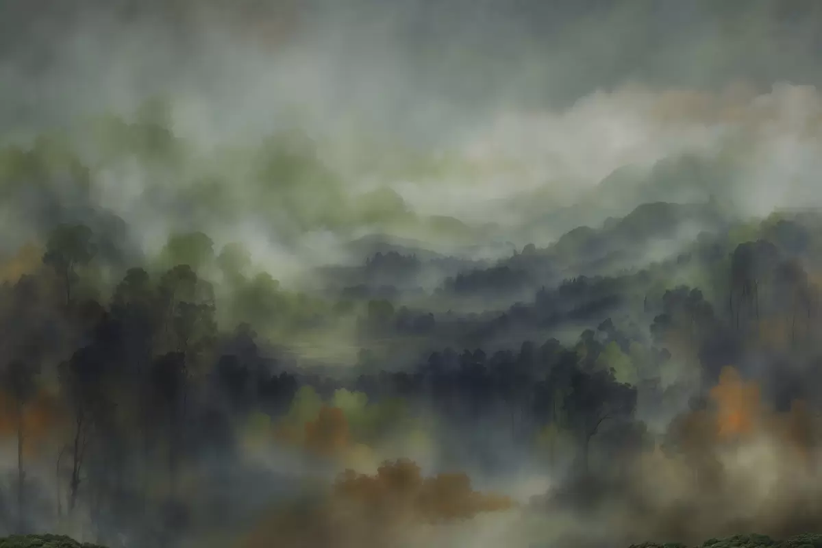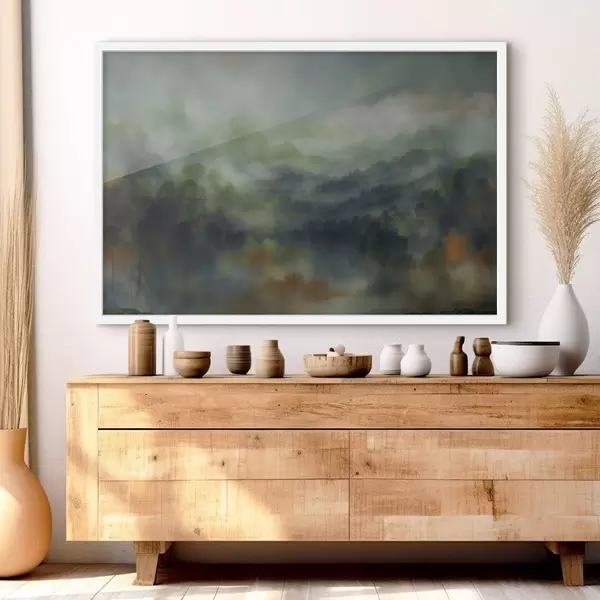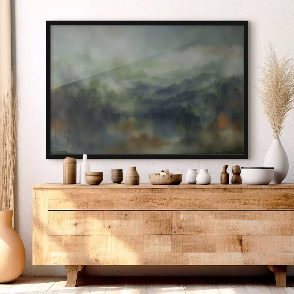 Poster Paysage de forêt brumeuse aux tons verts Nr f48821