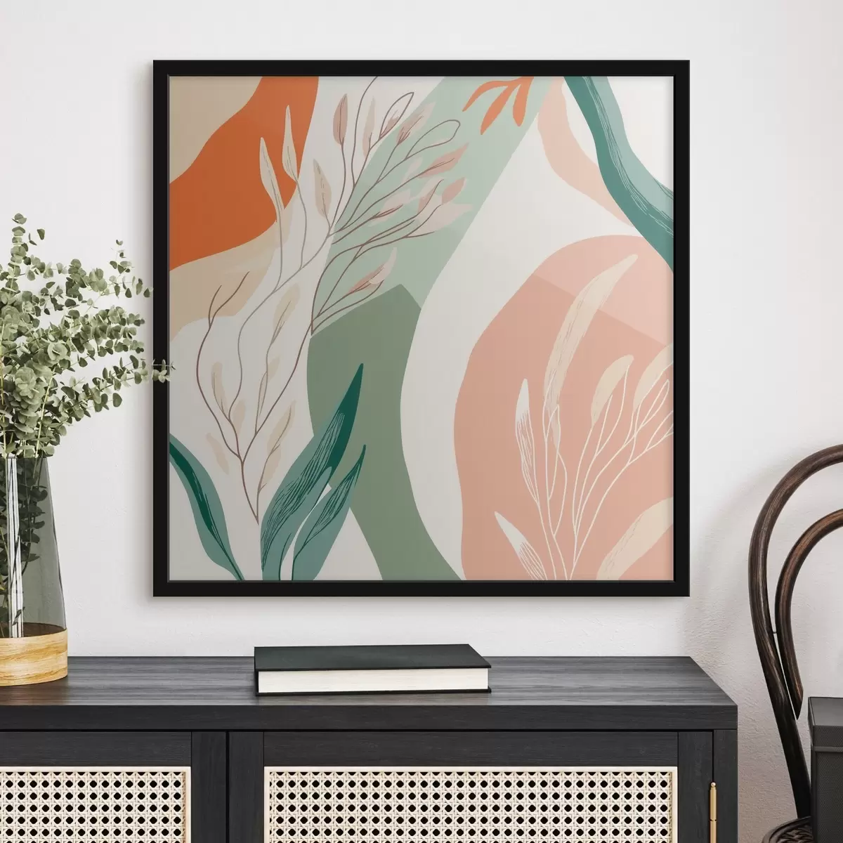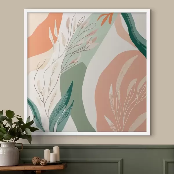 Poster Art botanique aux formes douces, dans une palette de vert corail f48840