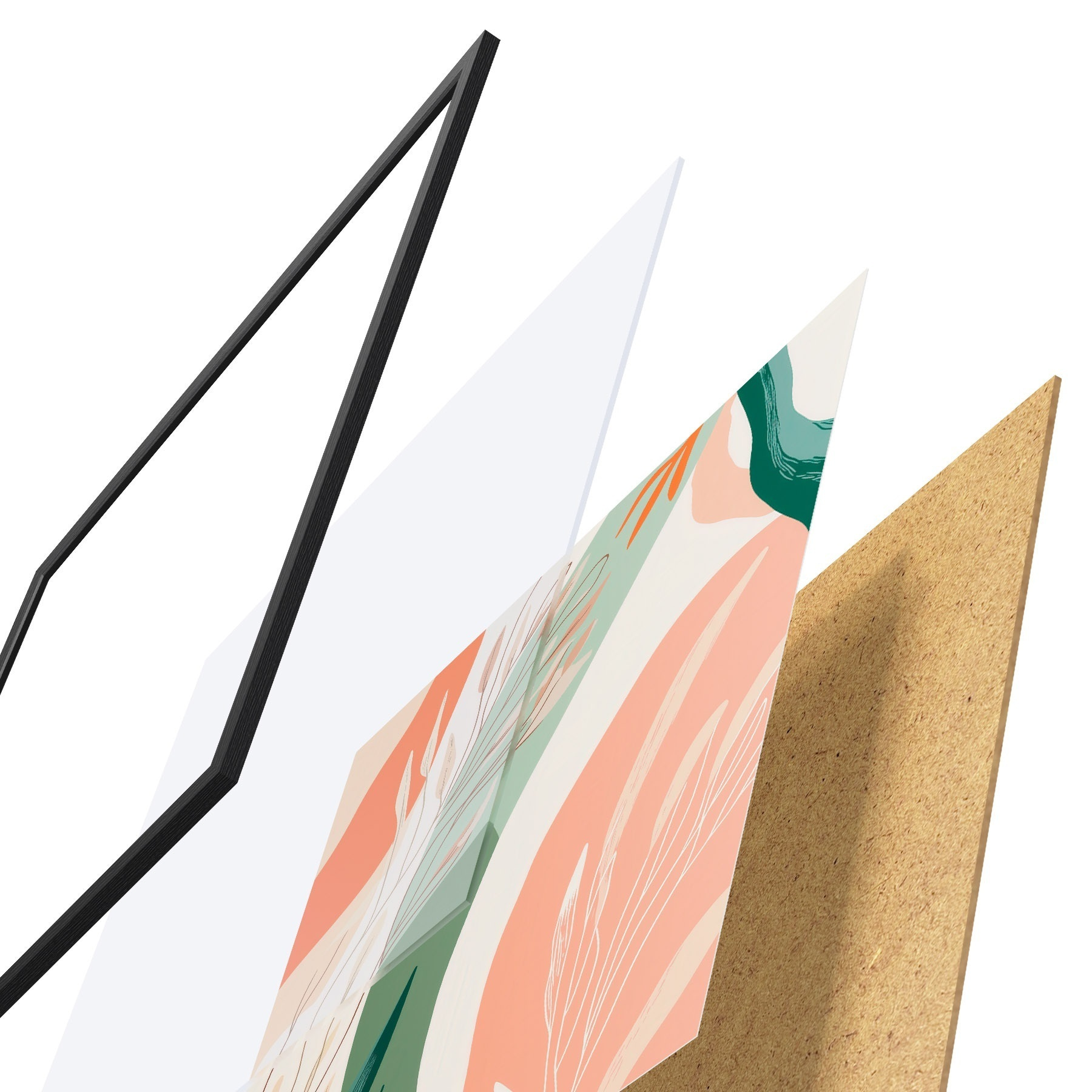 L’affiche encadrée est composée d’un cadre, d’un plexiglas, d’une image imprimée et d’un support en aggloméré. Elle est prête à être accrochée au mur grâce aux fixations situées à l’arrière.