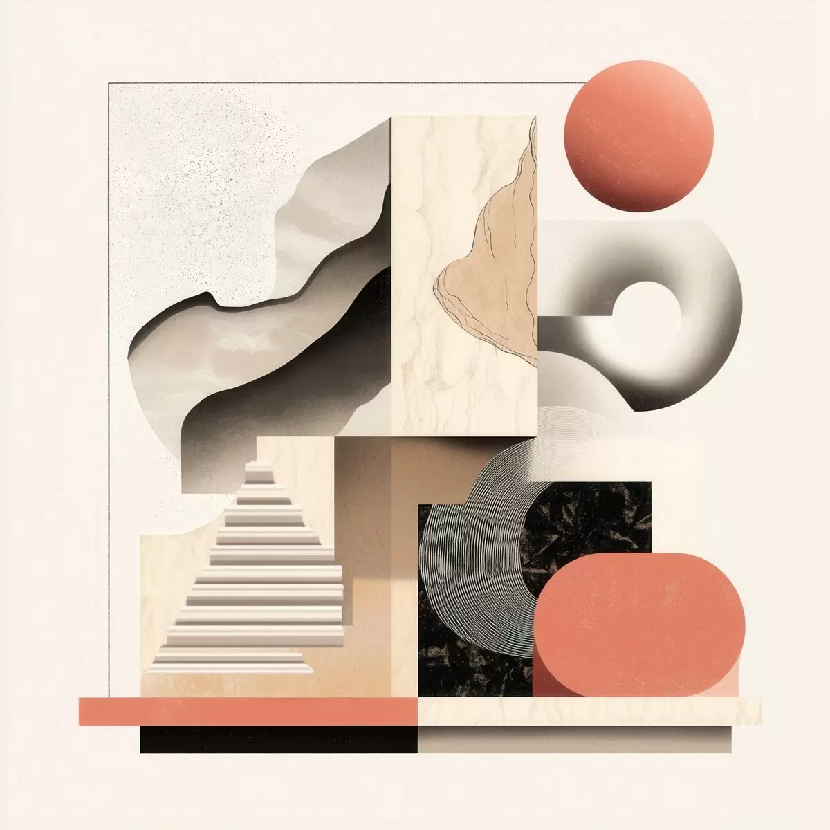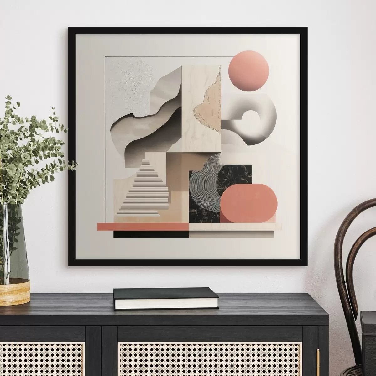 Poster Formes abstraites dans une palette de tons beige et gris, dans un style pictural contemporain f48842