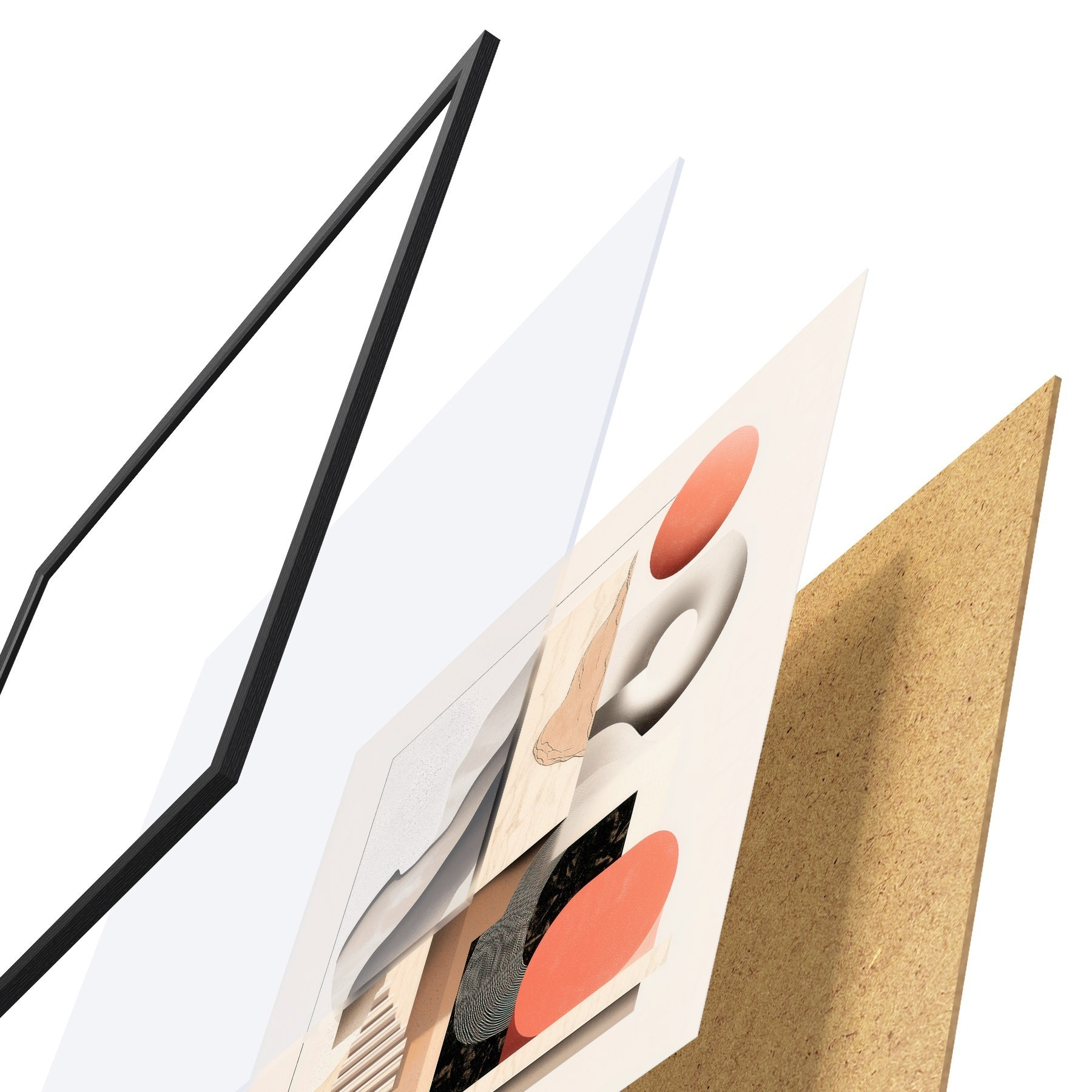 L’affiche encadrée est composée d’un cadre, d’un plexiglas, d’une image imprimée et d’un support en aggloméré. Elle est prête à être accrochée au mur grâce aux fixations situées à l’arrière.