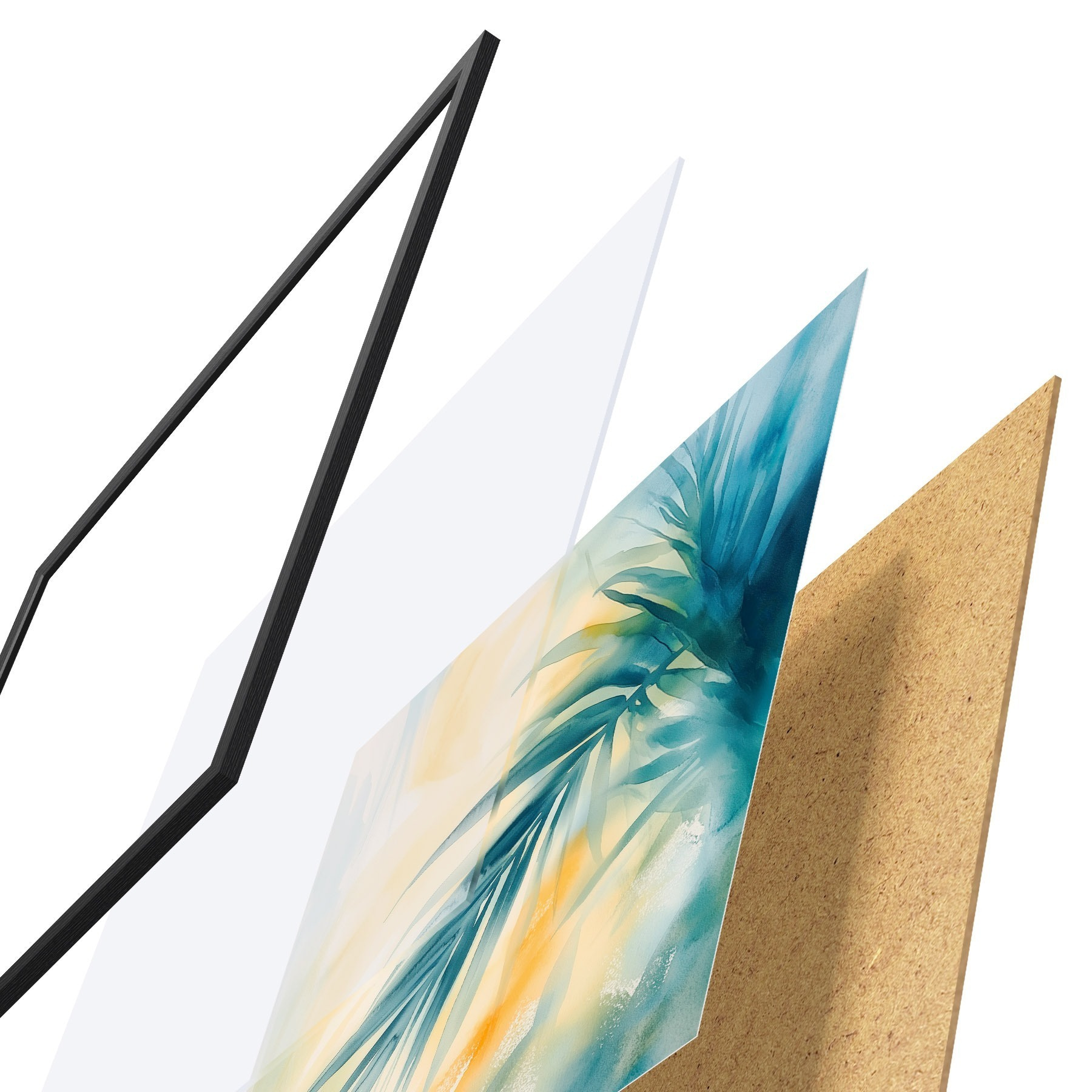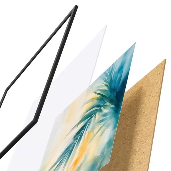 L’affiche encadrée est composée d’un cadre, d’un plexiglas, d’une image imprimée et d’un support en aggloméré. Elle est prête à être accrochée au mur grâce aux fixations situées à l’arrière.